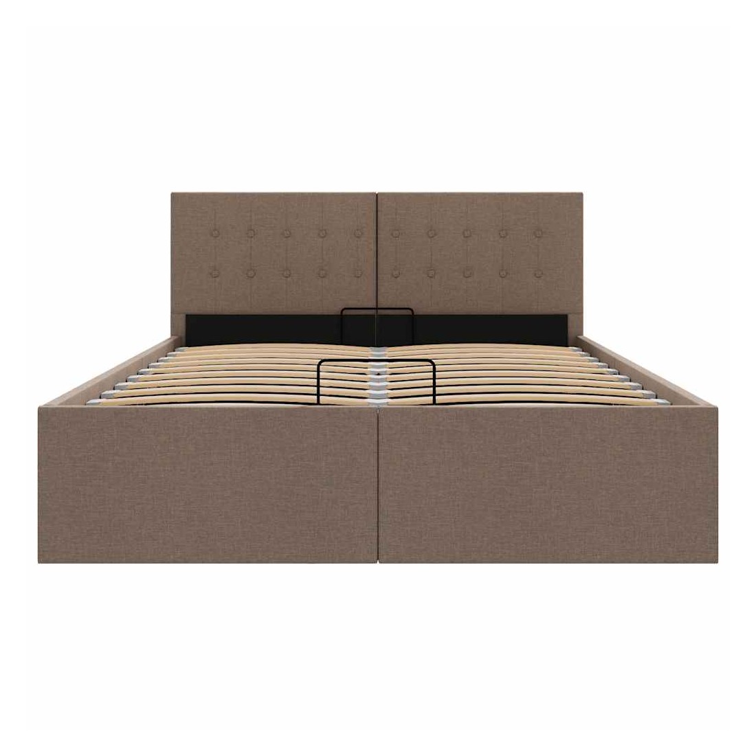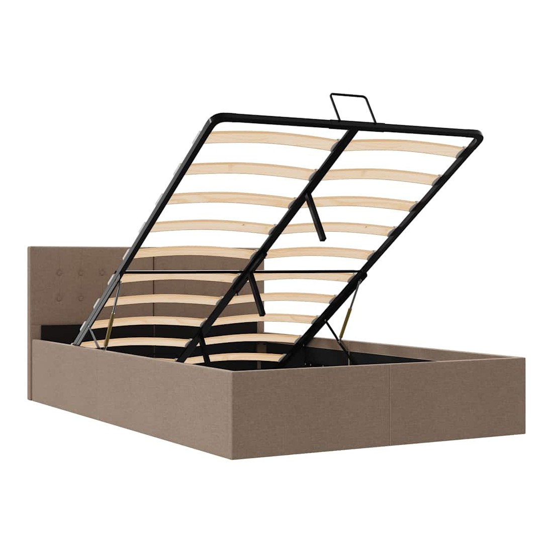 Ajoutez instantanément un goût moderne impressionnant à votre chambre à coucher grâce à notre cadre de lit en tissu hydraulique ! Ce lit simple se caractérise par un design double mais élégant, ainsi que par une construction solide, car il est fabriqué en MDF robuste et résistant. Ce lit rembourré transforme l'espace inutilisé sous le matelas en espace de rangement, avec suffisamment d'espace pour ranger les vêtements, les draps, les couvertures, etc. Le mécanisme de levage à gaz hydraulique facilite le soulèvement du matelas. Le sommier à lattes restera droit une fois soulevé pour vous laisser les deux mains libres d'enlever ou de stocker des articles en dessous. Le cadre en acier enduit de poudre et les lattes en contreplaqué ajoutent à la robustesse et à la durabilité du lit. Rembourré de tissu durable, ce lit de rangement est accueillant et facile d'entretien. Ce produit est facile à assembler. Ce meuble de chambre à coucher convient à un matelas de 140 x 200 cm. Veuillez noter que la livraison inclut un cadre de lit seulement ; un matelas n'est pas inclus. Vous pouvez chercher le matelas correspondant dans notre boutique.
