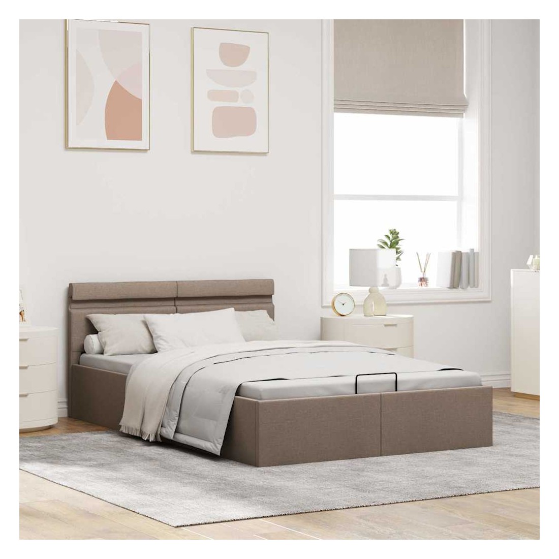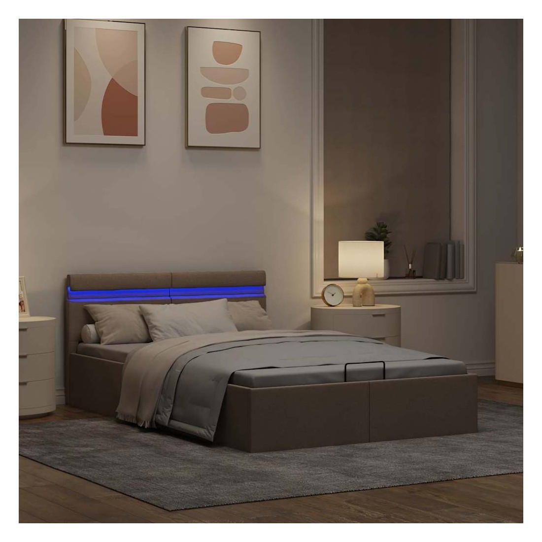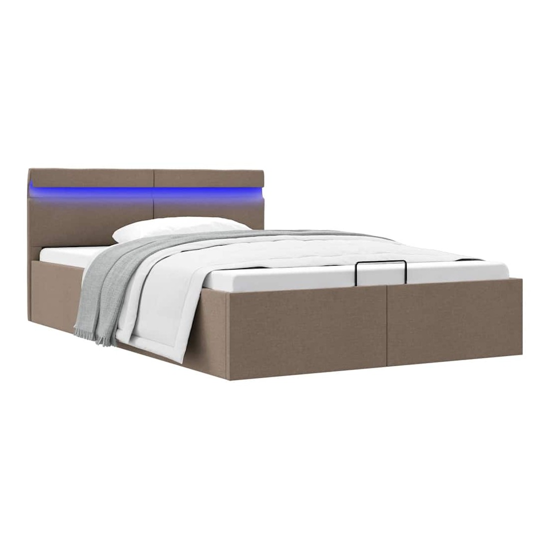 Ajoutez instantanément un goût moderne impressionnant à votre chambre à coucher grâce à notre cadre de lit en tissu hydraulique ! Ce lit simple se caractérise par un design double mais élégant, ainsi que par une construction solide, car il est fabriqué en MDF robuste et résistant. Ce lit rembourré transforme l'espace inutilisé sous le matelas en espace de rangement, avec suffisamment d'espace pour ranger les vêtements, les draps, les couvertures, etc. Le mécanisme de levage à gaz hydraulique facilite le soulèvement du matelas. Le sommier à lattes restera droit une fois soulevé pour vous laisser les deux mains libres d'enlever ou de stocker des articles en dessous. Le cadre en acier enduit de poudre et les lattes en contreplaqué ajoutent à la robustesse et à la durabilité du lit. Recouvert de tissu durable, ce lit à espace de rangement semble accueillant et est facile à entretenir. Ce produit est facile à assembler. Ce meuble de chambre à coucher convient à un matelas de 120 x 200 cm. En outre, vous pouvez facilement régler la puissance, la luminosité et les différentes couleurs clignotantes de la bande lumineuse LED avec la télécommande pour créer un spectacle de lumière époustouflant. Veuillez noter que la livraison inclut un cadre de lit seulement ; un matelas n'est pas inclus. Vous pouvez chercher le matelas correspondant dans notre boutique. Remarque : ce produit est doté d'un connecteur USB, mais la source d'alimentation certifiée de USB 5V n'est pas incluse.