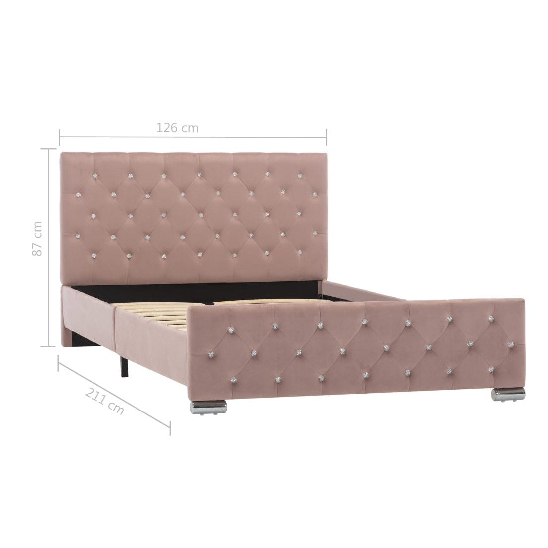 Ce cadre de lit classique deviendra l'attraction principale de votre chambre à coucher. Se distinguant par un design sobre mais élégant, ce cadre de lit ajoute une touche de charme élégant à la décoration de votre chambre à coucher. Fabriqué en bois et en acier, ce cadre de lit est extrêmement robuste et durable. Les pieds en métal ajoutent de la durabilité supplémentaire au lit. De plus, recouvert de velours durable, le lit dégage un look accueillant et se nettoie facilement. Ce cadre de lit convient à un matelas de 120 x 200 cm. Veuillez noter que la livraison inclut un cadre de lit seulement ; un matelas n'est pas inclus. Le lit est facile à assembler. Vous pouvez chercher le matelas correspondant dans notre boutique.