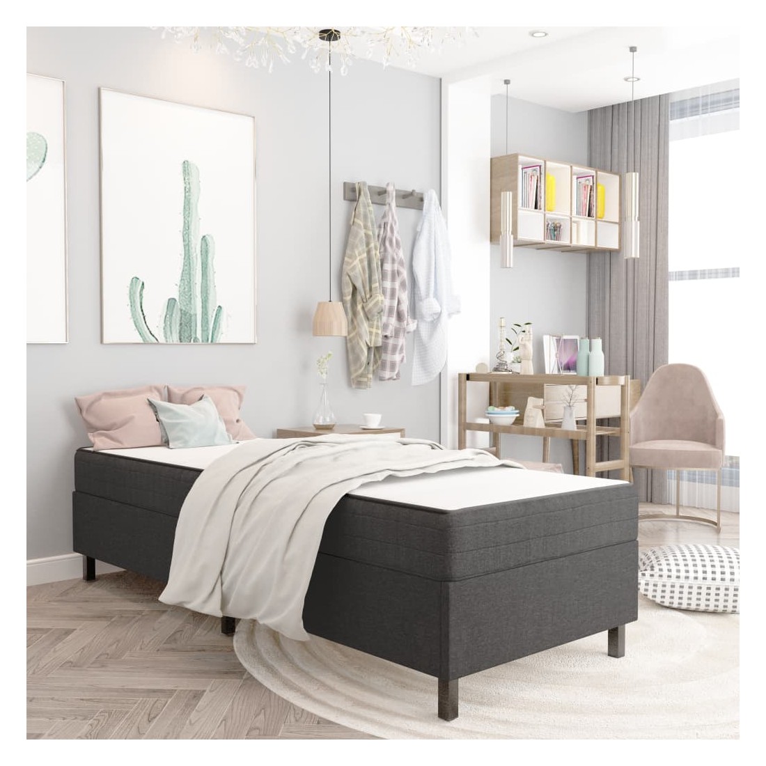 Se distinguant par un design sobre mais élégant, ce cadre de lit sommier tapissier ajoute une touche de charme élégant à la décoration de votre chambre à coucher. Fabriqué en MDF et en métal, le cadre de lit est extrêmement robuste et durable. De plus, recouvert d'un tissu durable et résistant à l'usure, le lit dégage un look accueillant et il est facile à nettoyer. Ce lit convient à un matelas de 100 x 200 cm. Veuillez noter qu'une tête de lit et un matelas ne sont pas inclus dans la livraison. Le lit est facile à assembler. Vous pouvez consulter notre boutique pour les matelas et têtes de lit assortis.