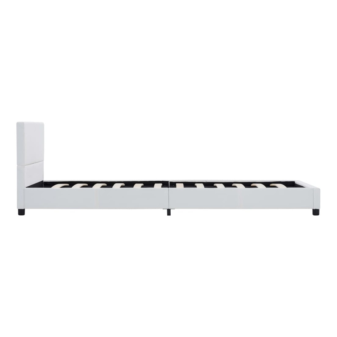 Ajoutez instantanément un goût moderne impressionnant à votre chambre à coucher avec notre cadre de lit élégant ! Ce cadre de lit en faux cuir avec une tête de lit confortable deviendra le point central de votre chambre à coucher. Fabriqué en MDF, le cadre de lit est extrêmement robuste et durable. Les pieds en acier enduit de poudre ajoutent une durabilité accrue au lit. De plus, recouvert de cuir artificiel durable, le lit dégage un look accueillant. Grâce à la tête de lit souple, vous pouvez regarder la télévision ou lire un livre confortablement. Ce cadre de lit convient à un matelas de 100 x 200 cm. Veuillez noter que la livraison inclut un cadre de lit seulement ; un matelas n'est pas inclus. Le lit rembourré est facile à assembler. Vous pouvez chercher le matelas correspondant dans notre boutique.