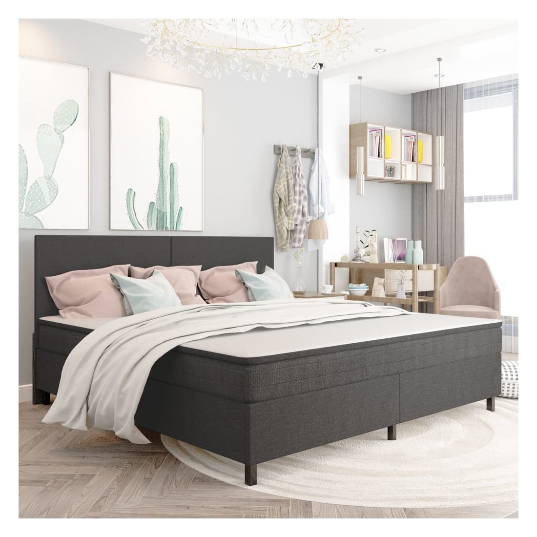 Ce sommier tapissier ajoute une touche de charme élégant à la décoration de votre chambre à coucher avec un design sobre. Le cadre de lit, en MDF et en métal, est extrêmement robuste et durable. Rembourré d'un tissu durable et résistant à l'usure, le lit dégage un look accueillant et il est facile à nettoyer. Doté d'une épaisseur supplémentaire d'env. 20 cm, le matelas à dessus de couette avec sommiers amortisseurs vous assure une bonne nuit de sommeil. Il est fait de mousse spécialement conçue avec des couches pour soulager les points de pression. La conception du ressort interne comporte des ressorts supplémentaires qui offrent un soutien optimal. C'est également une excellente solution pour les personnes lourdes et les personnes souffrant de transpiration excessive. Le matelas retrouve sa forme après pression. De plus, le surmatelas peut être enlevé facilement et lavée en ouvrant la fermeture éclair. Ce produit est facile à assembler. Remarque : pour des raisons d'hygiène, le matelas et le surmatelas ne peuvent être retournée si l'emballage est retiré ou ouvert.