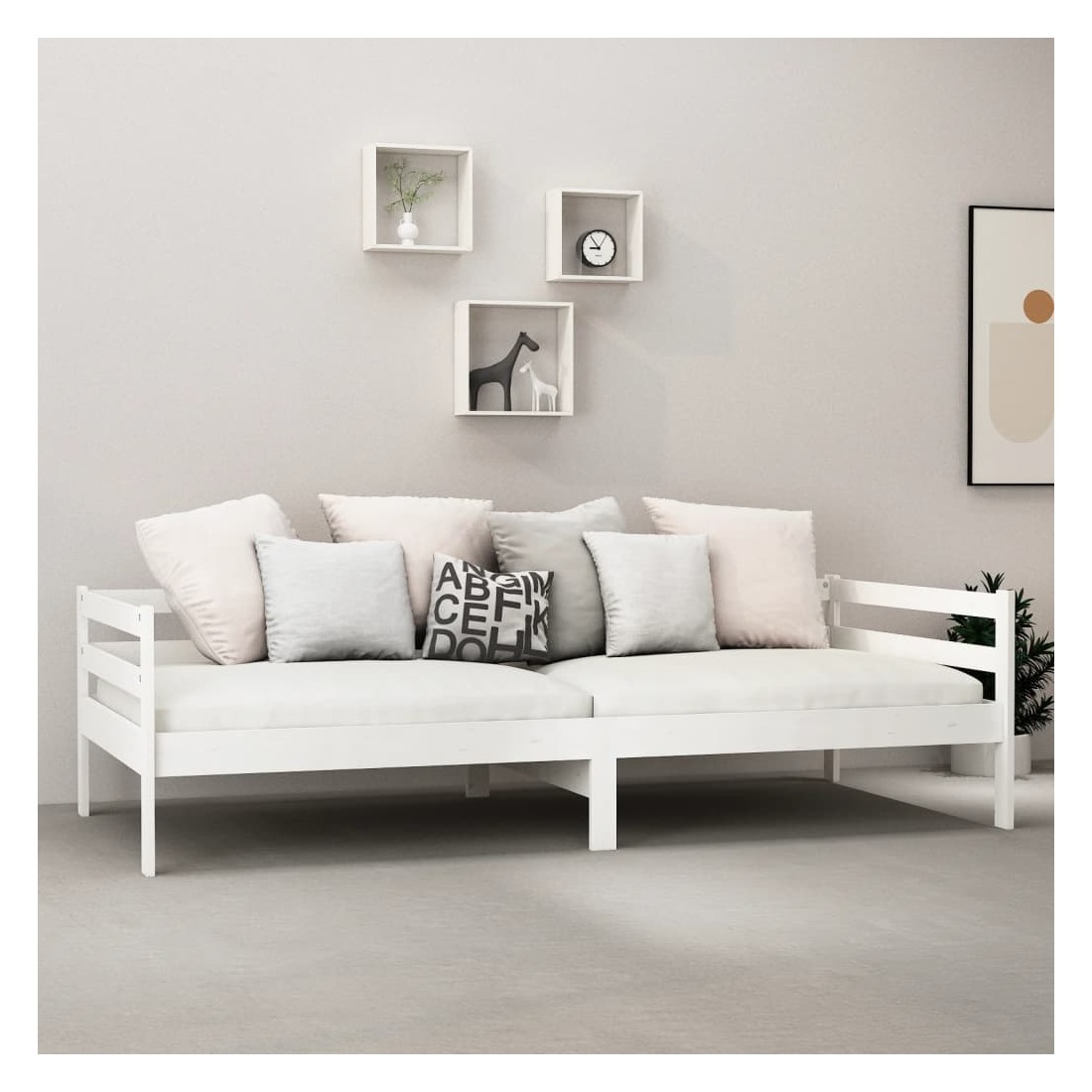 Ce lit en bois est une solution parfaite pour accueillir des invités pour la nuit tout en offrant un espace confortable pour s'asseoir pendant la journée. Le canapé-lit est fait de bois de pin massif, ce qui le rend robuste et stable. Les lattes robustes offrent également le soutien et le confort nécessaires. Vous pouvez toujours profiter d'une bonne nuit de sommeil sur le lit avec un matelas ultra-doux ! Il offre une expérience de sommeil calme et protège également votre santé vertébrale. Nous vous recommandons d'aérer régulièrement le matelas pour prolonger sa durée de vie. Le lit en bois multifonctionnel peut être utilisé comme un canapé pendant la journée, ou comme un lit pendant la nuit pour offrir une solution rapide pour accueillir des invités pour la nuit. Ce canapé-lit pratique saura attirer tous les regards, où qu'il sera placé ! Remarque importante : vous ne pouvez pas retourner le matelas pour des raisons d'hygiène si la housse de matelas a été ouverte ou retirée.