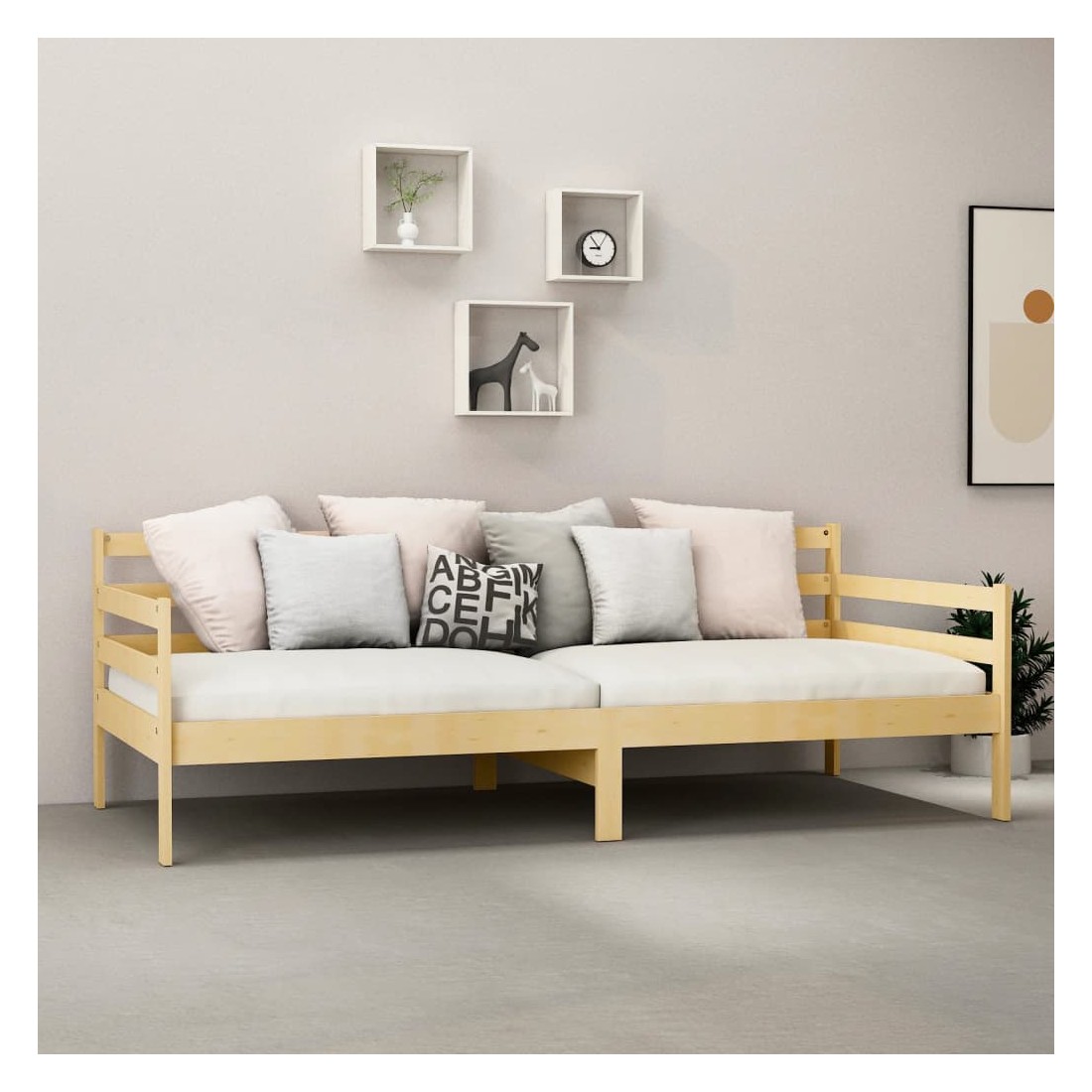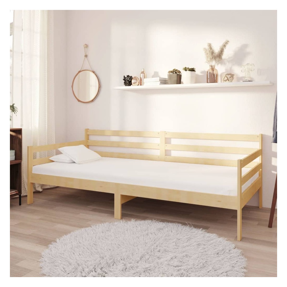 Ce lit en bois est une solution parfaite pour accueillir des invités pour la nuit tout en offrant un espace confortable pour s'asseoir pendant la journée. Le canapé-lit est fait de bois de pin massif, ce qui le rend robuste et stable. Les lattes robustes offrent également le soutien et le confort nécessaires. Vous pouvez toujours profiter d'une bonne nuit de sommeil sur le lit avec un matelas ultra-doux ! Il offre une expérience de sommeil calme et protège également votre santé vertébrale. Nous vous recommandons d'aérer régulièrement le matelas pour prolonger sa durée de vie. Le lit en bois multifonctionnel peut être utilisé comme un canapé pendant la journée, ou comme un lit pendant la nuit pour offrir une solution rapide pour accueillir des invités pour la nuit. Ce canapé-lit pratique saura attirer tous les regards, où qu'il sera placé ! Remarque importante : vous ne pouvez pas retourner le matelas pour des raisons d'hygiène si la housse de matelas a été ouverte ou retirée.