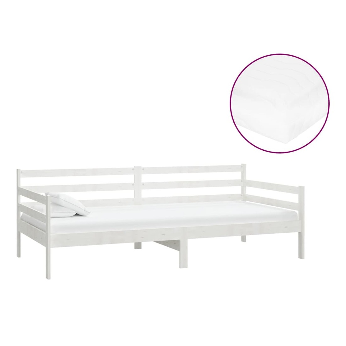 Lit de repos avec matelas 90x200 cm Blanc Bois de pin massif