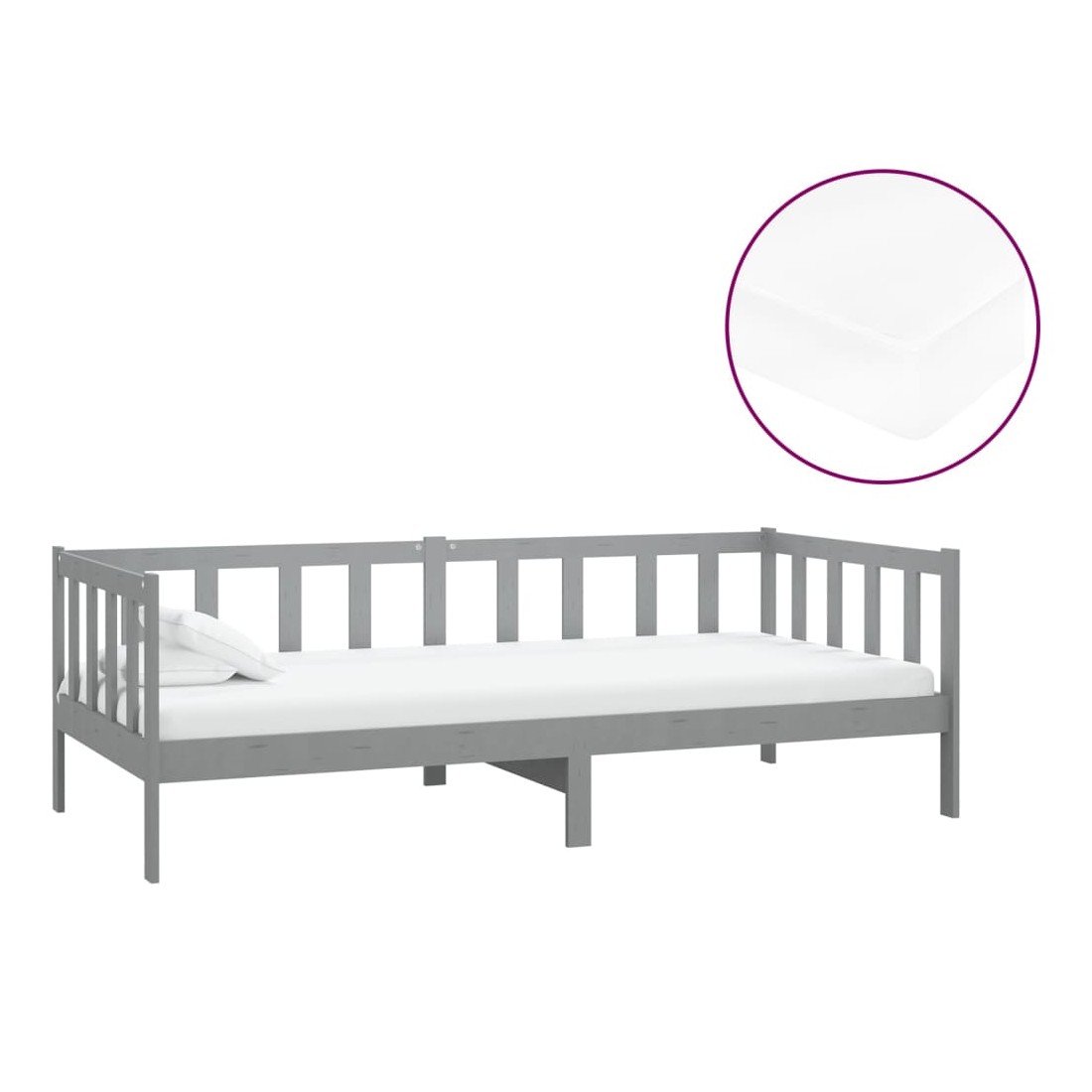 Lit de repos avec matelas 90x200 cm Gris Bois de pin massif