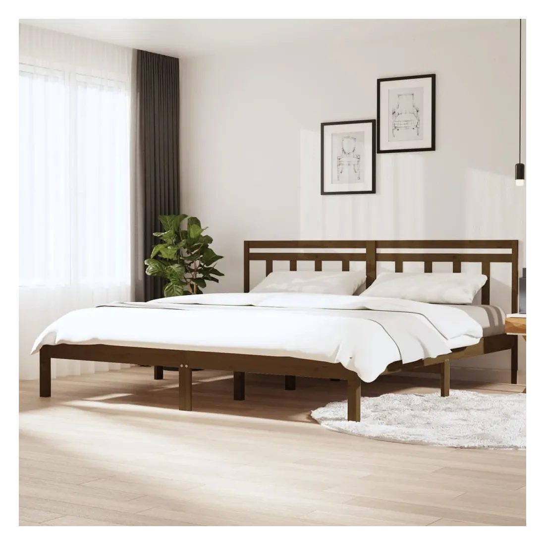 Cadre de lit sans matelas marron miel bois massif 200x200 cm
