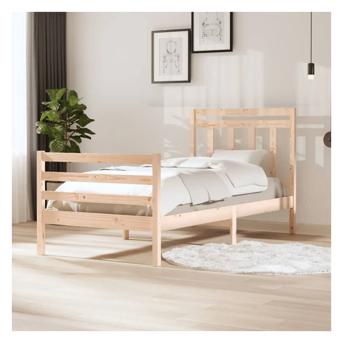 Avec un design simple mais intemporel, ce cadre de lit sera un supplément vraiment pratique et décoratif à votre chambre à coucher. Matériau de première qualité : le bois de pin massif est un matériau naturel magnifique. Le bois de pin a un grain droit et les nœuds donnent au matériau son aspect caractéristique et rustique.Cadre robuste et stable : le cadre en bois assure robustesse et stabilité. Les lattes apportent un soutien supplémentaire à votre lit. Il prolonge la durée de vie de votre matelas en absorbant la majeure partie du stress et du poids sur le lit.Design accrocheur : la conception de la tête et du pied de lit est à la fois décorative et pratique. Il ajoute un style et un confort uniques. Bon à savoir :Le matelas n'est pas inclus. Vous pouvez consulter notre boutique pour trouver les matelas assortis.Certaines pièces de tête de lit sont emballées dans les cartons du cadre de lit en raison du manque d’espace.Ce cadre de lit convient à un matelas mesurant 100 x 200 cm.