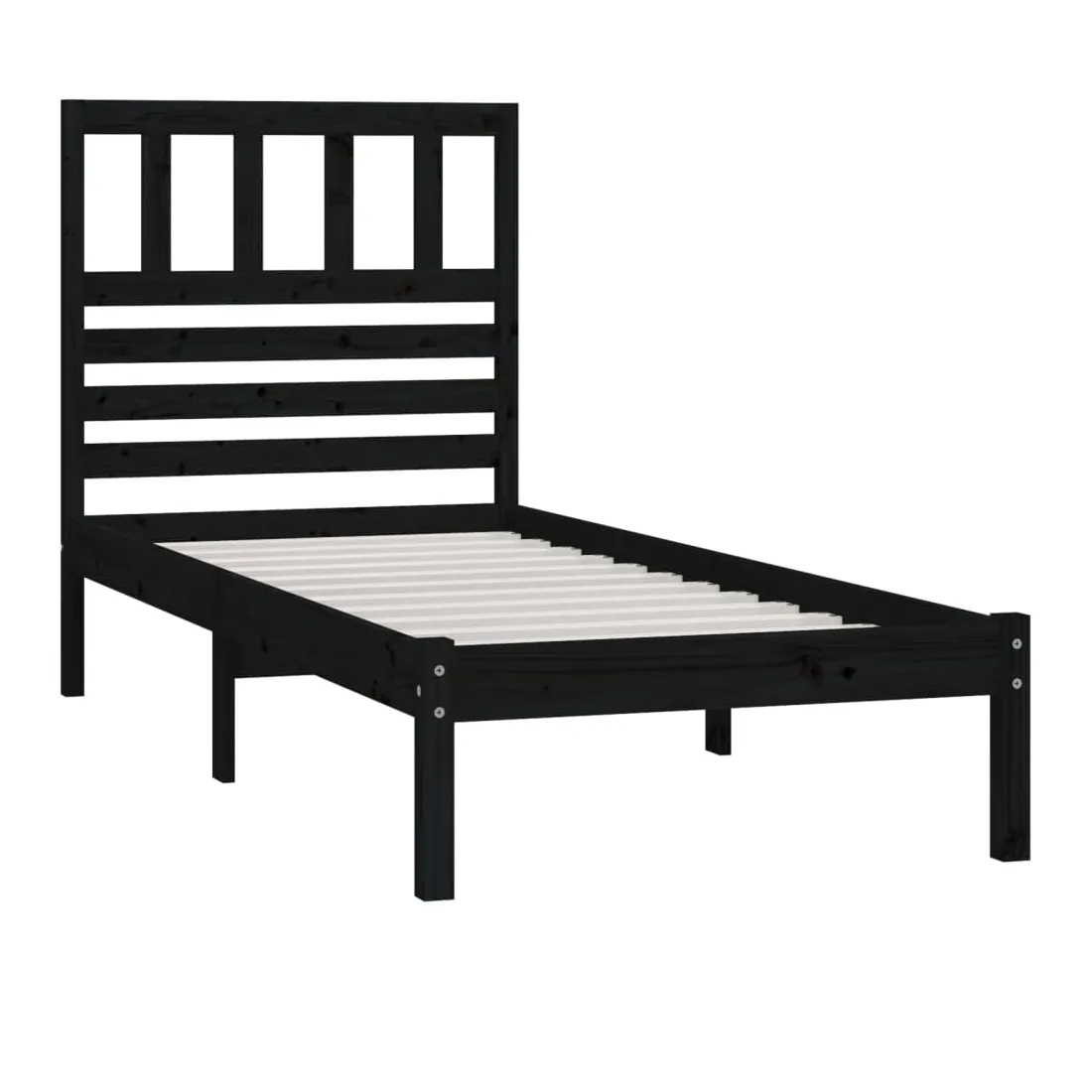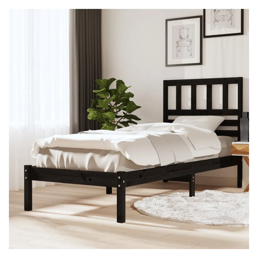 Cadre de lit sans matelas noir bois massif de pin 100x200 cm