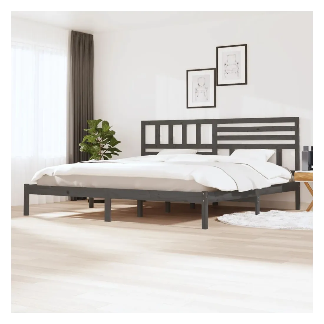 Cadre de lit sans matelas bois massif de pin gris 200x200 cm