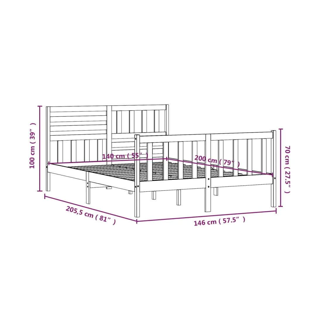 • Dimensions totales du cadre de lit : 205,5 x 146 x 100 cm (L x l x H)