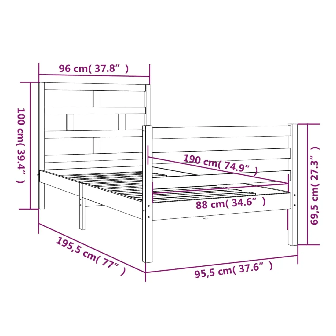• Dimensions de la tête de lit : 96 x 4 x 100 cm (l x P x H)