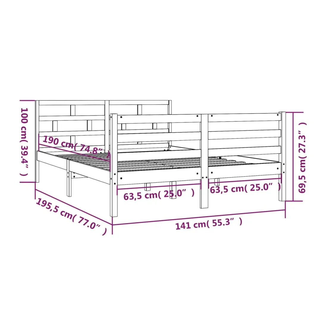 • Dimensions totales du cadre de lit : 195,5 x 141 x 100 cm (L x l x H)