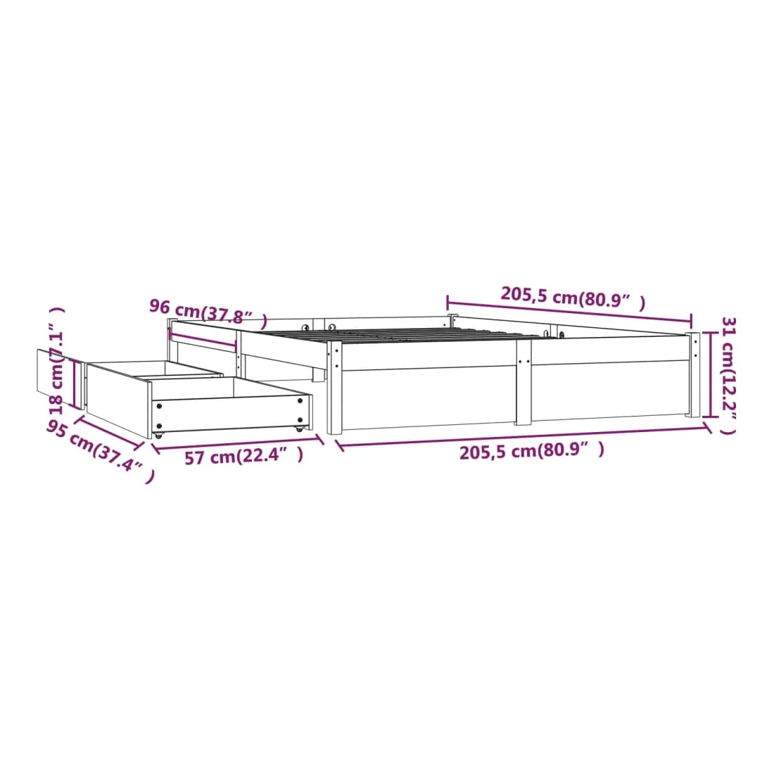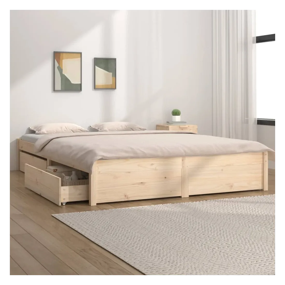 Cadre de lit sans matelas avec tiroirs 200x200 cm