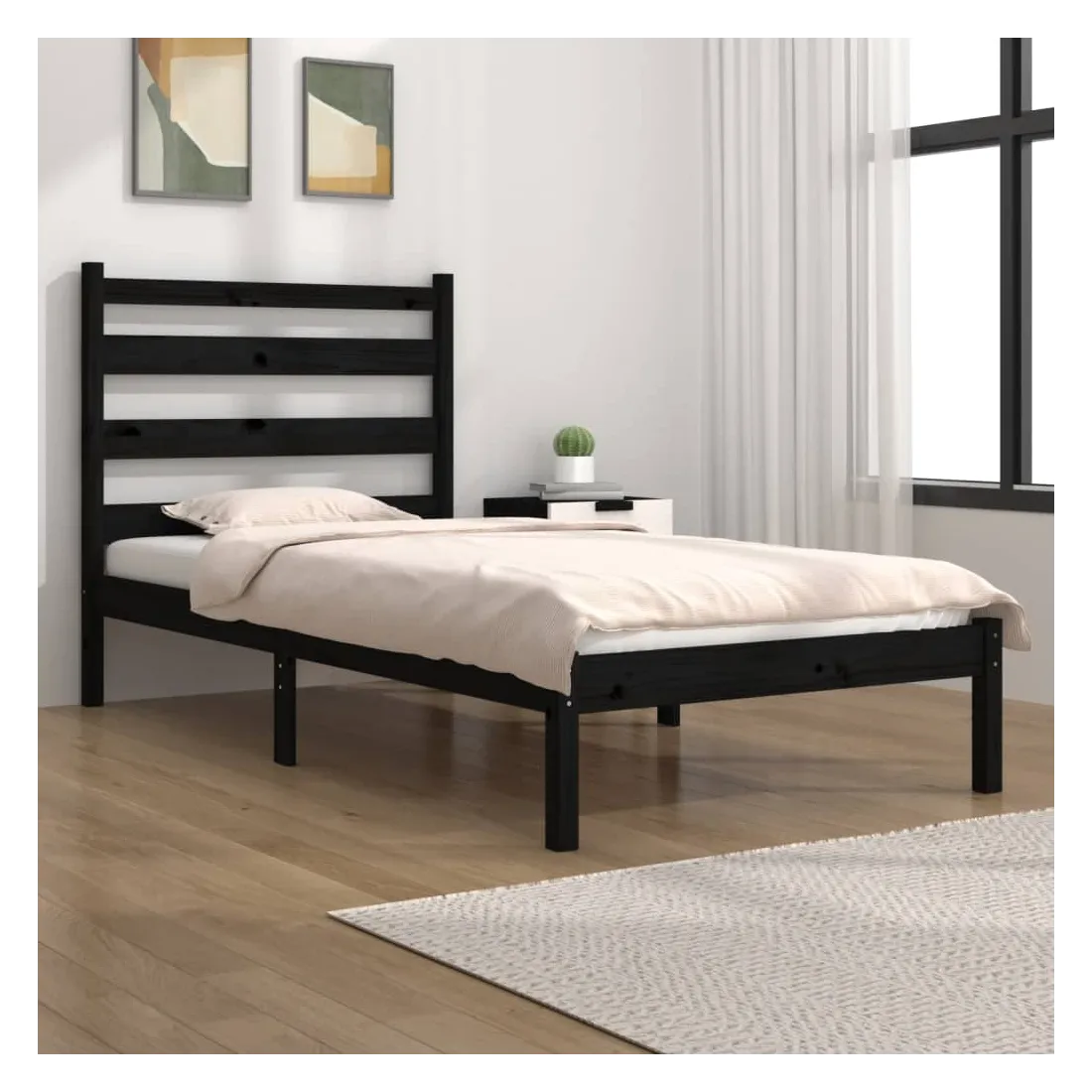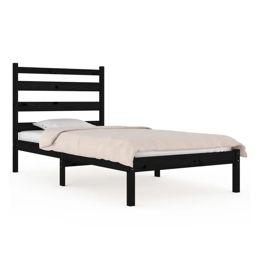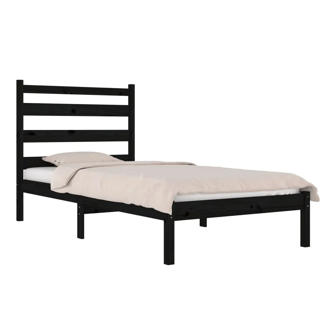 Cadre de lit sans matelas noir bois massif 100x200 cm