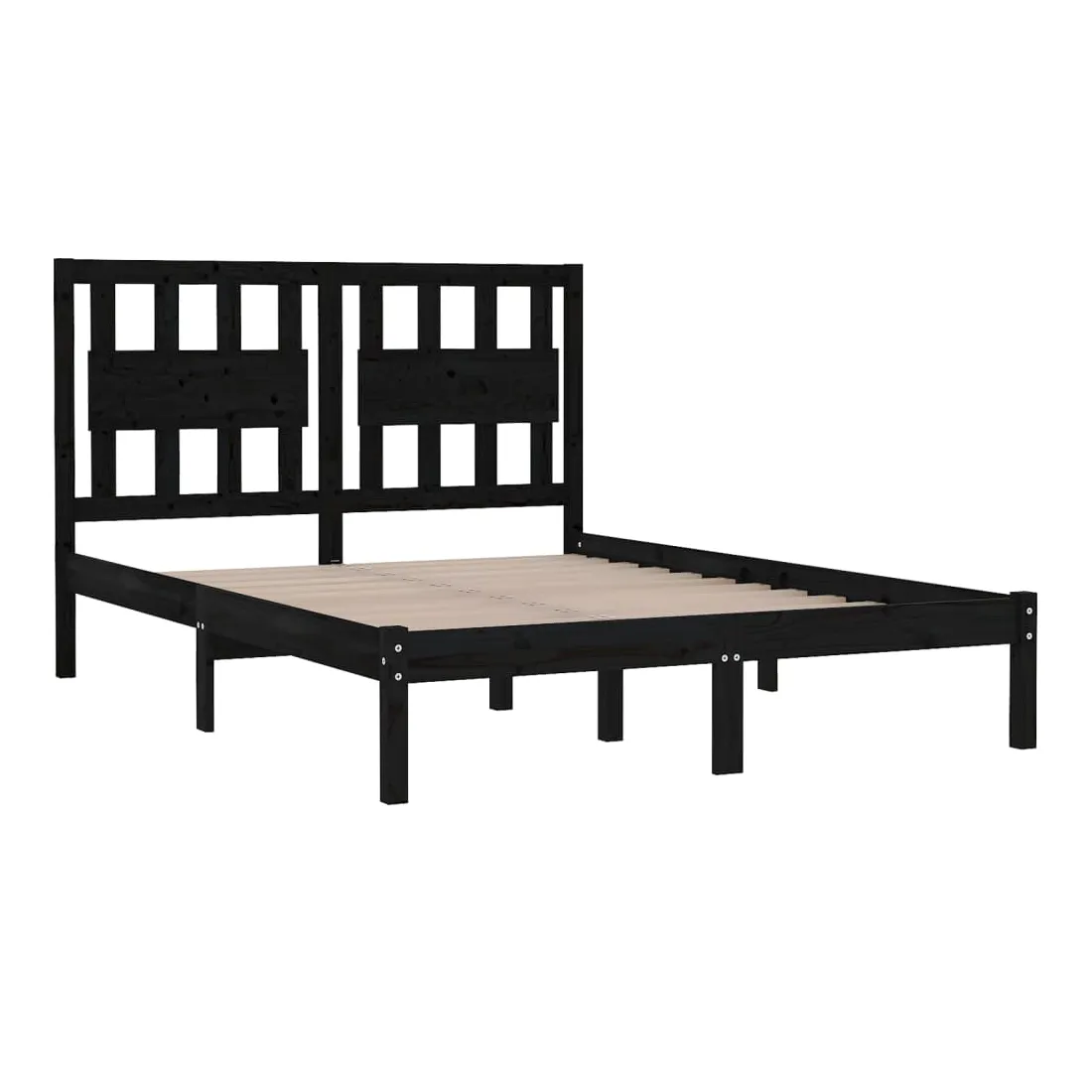 Cadre de lit sans matelas noir bois massif 140x190 cm