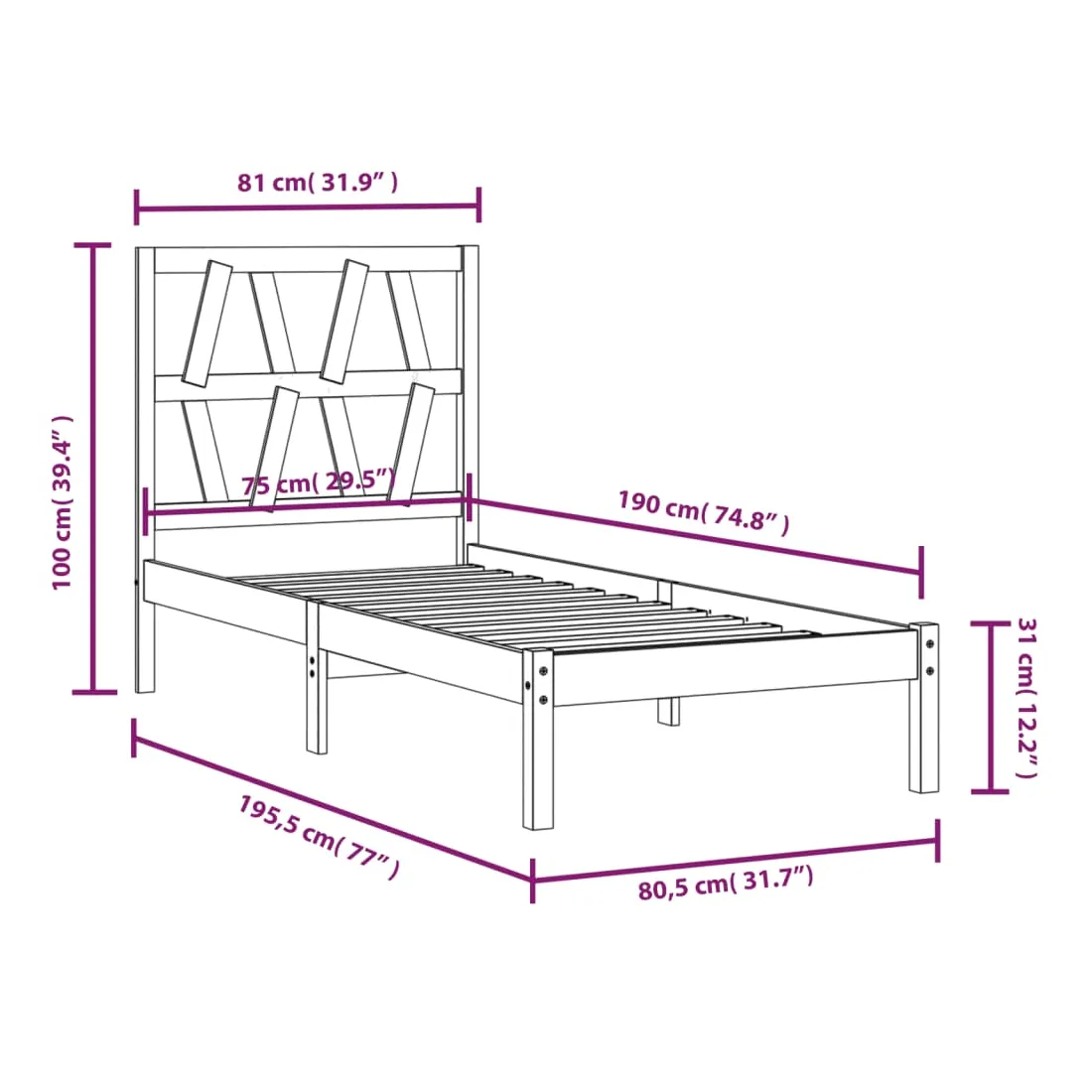 Quoi de mieux que de profiter d'une bonne nuit de sommeil à la fin d'une journée bien remplie ? Ce cadre de lit en bois classique est le choix parfait pour vous détendre après une longue journée. Bois de pin massif : le bois de pin massif est un matériau naturel magnifique. Le bois de pin a un grain droit et les nœuds donnent au matériau son aspect caractéristique et rustique.Cadre robuste et stable : le cadre en bois assure robustesse et stabilité.Soutien confortable : la tête de lit vous offre un excellent soutien dorsal lorsque vous êtes assis dans votre lit pour lire ou regarder des films. Bon à savoir :La livraison comprend uniquement un cadre de lit. Le matelas n'est pas inclus. Vous pouvez consulter notre boutique pour trouver les matelas assortis.Certaines pièces de tête de lit sont emballées dans les cartons du cadre de lit en raison du manque d’espace.Ce cadre de lit convient à un matelas mesurant 75 x 190 cm (petit simple).