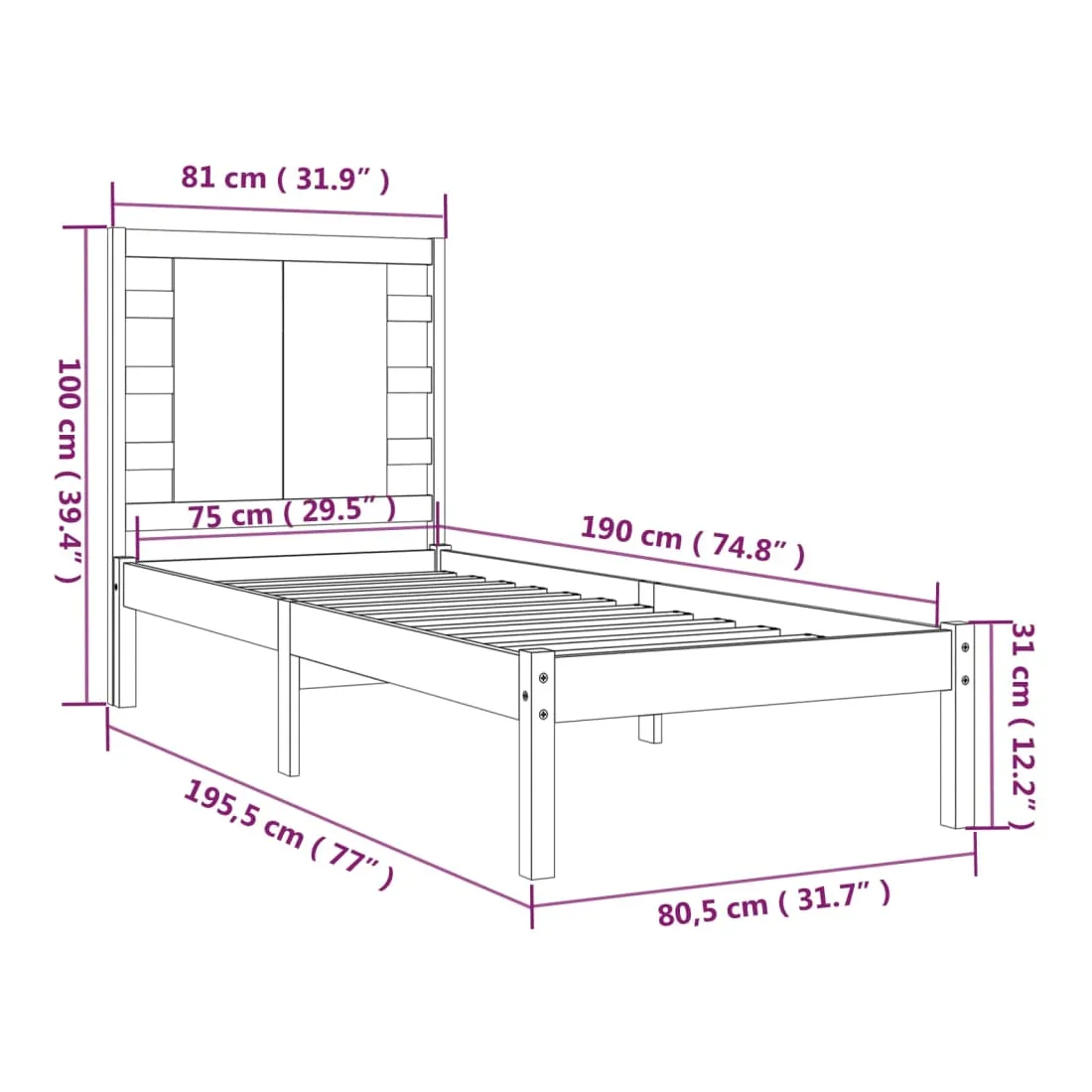 Quoi de mieux que de profiter d'une bonne nuit de sommeil à la fin d'une journée bien remplie ? Ce cadre de lit en bois classique est le choix parfait pour votre lit et la première chose que vous voulez vous détendre après une longue journée. Bois de pin massif : le bois de pin massif est un matériau naturel magnifique. Le bois de pin a un grain droit et les nœuds donnent au matériau son aspect caractéristique et rustique.Lattes pour un soutien supplémentaire : les lattes offrent un soutien supplémentaire à votre lit. Elles prolongent la durée de vie de votre matelas en absorbant la majeure partie du stress et du poids sur le lit.Tête de lit pratique : la tête de lit offre un soutien supplémentaire, augmentant le niveau de confort. En outre, elle peut maintenir vos oreillers en place pour un meilleur sommeil. Bon à savoir :La livraison comprend uniquement un cadre de lit. Le matelas n'est pas inclus. Vous pouvez consulter notre boutique pour trouver les matelas assortis.Certaines pièces de tête de lit sont emballées dans les cartons du cadre de lit en raison du manque d’espace.Ce cadre de lit convient à un matelas mesurant 75 x 190 cm (petit simple).