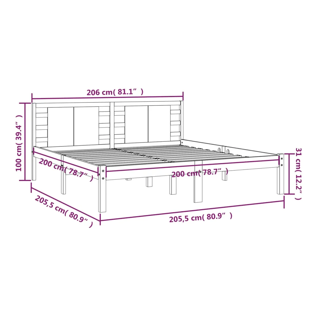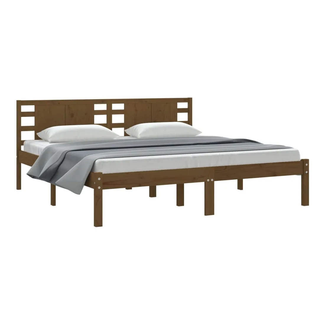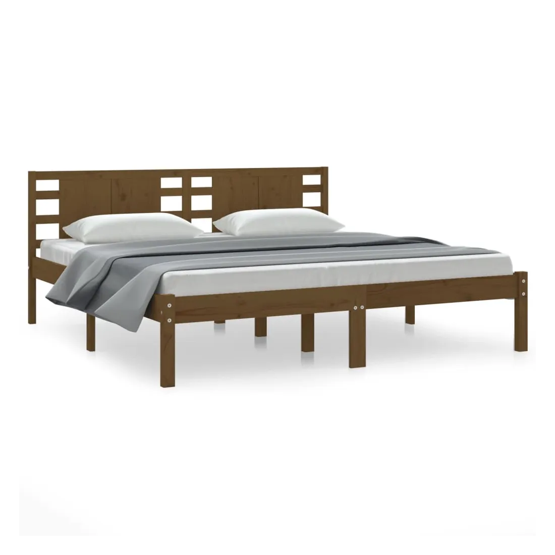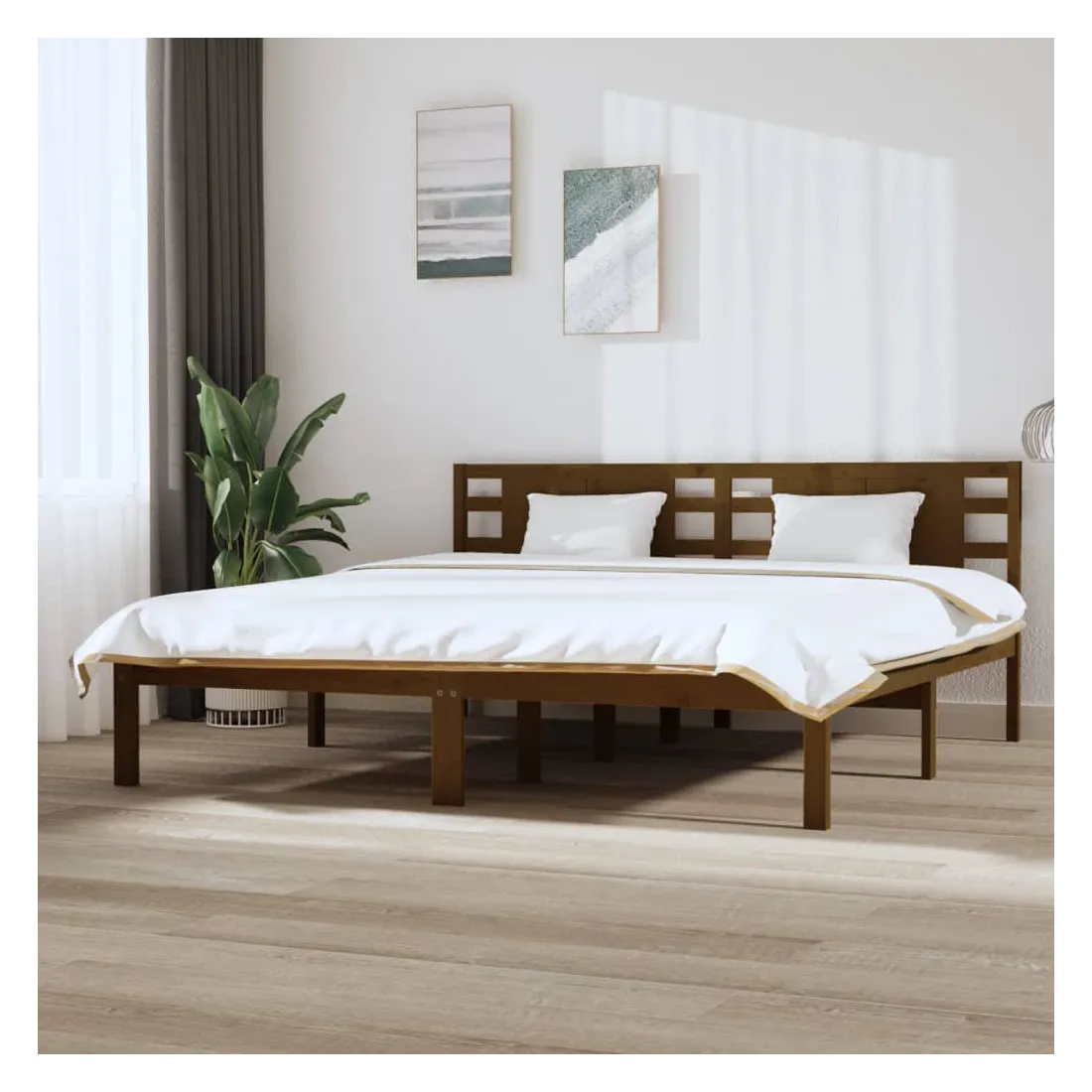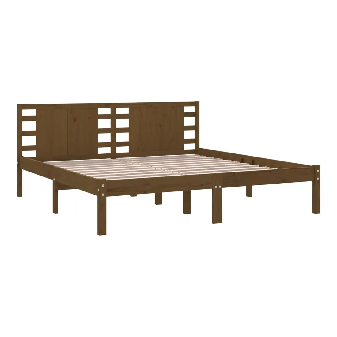 Cadre de lit sans matelas marron miel 200x200cm bois pin massif