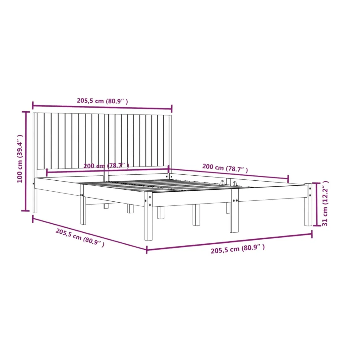 • Dimensions du cadre du lit : 205,5 x 205,5 x 31 cm (L x l x H)