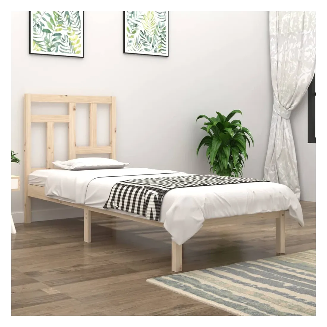 Prenez le chemin moderne vers votre chambre à coucher cool avec ce cadre de lit en bois ! Il constitue un supplément pratique et décoratif à votre intérieur. Bois de pin massif : le bois de pin massif est un matériau naturel magnifique. Le bois de pin a un grain droit et les nœuds donnent au matériau son aspect caractéristique et rustique.Cadre robuste et stable : le cadre en bois assure robustesse et stabilité.Tête de lit confortable : la tête de lit classique vous permet de vous reposer confortablement lorsque vous lisez ou regardez un film.Design accrocheur : la conception de la tête de lit est décorative et pratique. Il ajoute un style et un confort uniques. Bon à savoir :La livraison comprend uniquement un cadre de lit. Le matelas n'est pas inclus. Vous pouvez consulter notre boutique pour trouver les matelas assortis.Certaines pièces de tête de lit sont emballées dans les cartons du cadre de lit en raison du manque d’espace.Ce cadre de lit convient à un matelas mesurant 90 x 190 cm (simple).