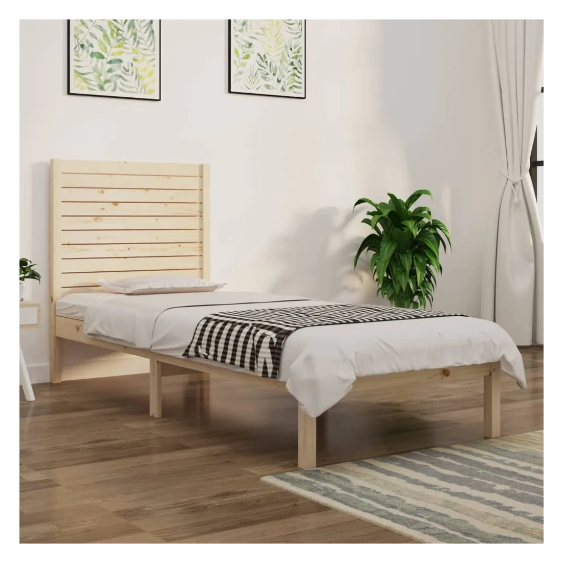 Avec un design simple mais intemporel, ce cadre de lit en bois sera un supplément vraiment pratique et décoratif à votre chambre à coucher. Bois de pin massif : le bois de pin massif est un matériau naturel magnifique. Le bois de pin a un grain droit et les nœuds donnent au matériau son aspect caractéristique et rustique.Cadre robuste et stable : les cadres de lit en bois en bois assurent robustesse et stabilité.Soutien confortable : la tête de lit vous offre un excellent soutien dorsal lorsque vous êtes assis au lit pour lire ou regarder des films.Design intemporel : la couleur et le design du sommier peuvent s'assortir facilement avec votre intérieur. Bon à savoir :Le matelas n'est pas inclus. Vous pouvez consulter notre boutique pour trouver les matelas assortis.Certaines pièces de tête de lit sont emballées dans les cartons du cadre de lit en raison du manque d’espace.Ce cadre de lit convient à un matelas mesurant 90 x 190 cm (simple).