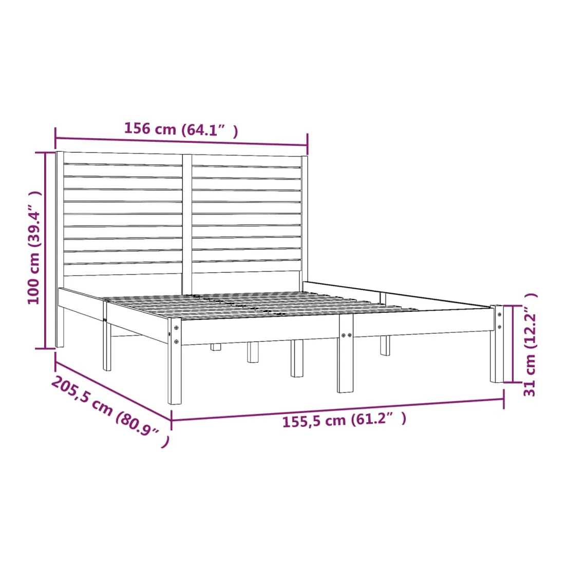 - Dimensions totales du cadre de lit : 205,5 x 156 x 100 cm (L x l x H)