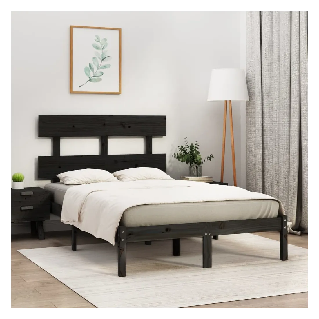 Cadre de lit sans matelas noir 140x190 cm bois massif