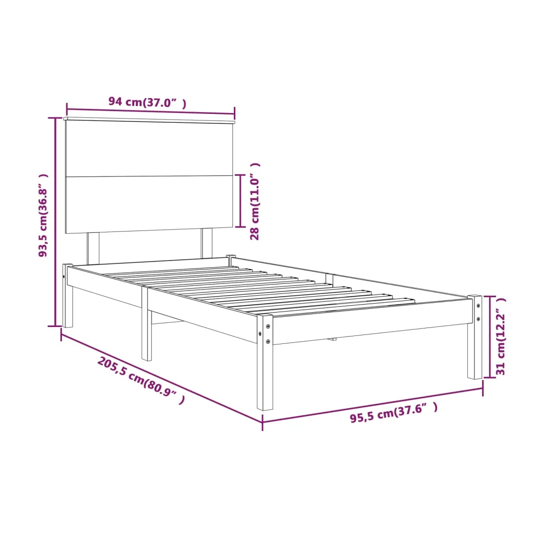 Cadre de lit sans matelas blanc 90x200 cm bois de pin massif