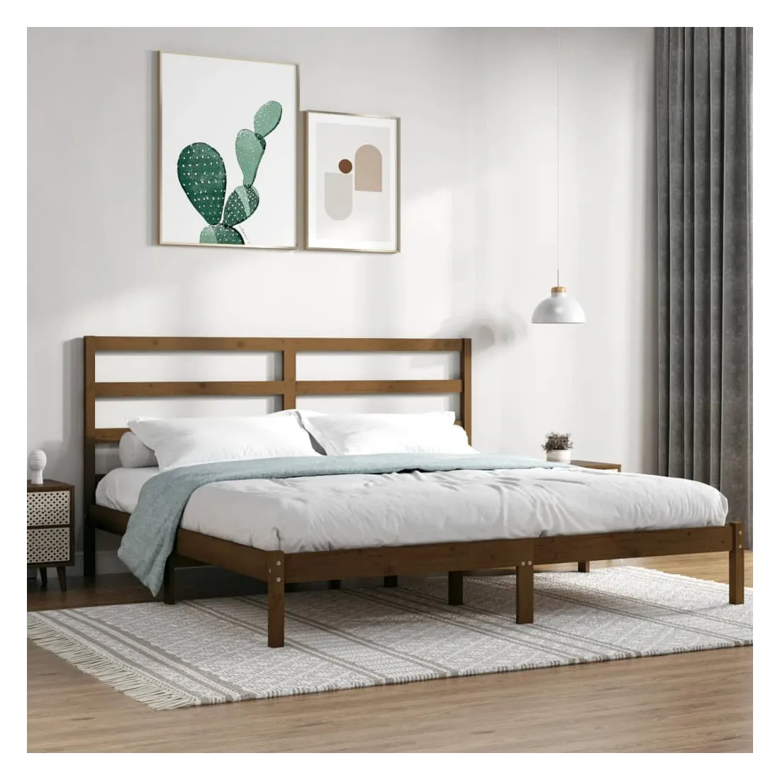 Cadre de lit sans matelas marron miel 200x200cm bois pin massif