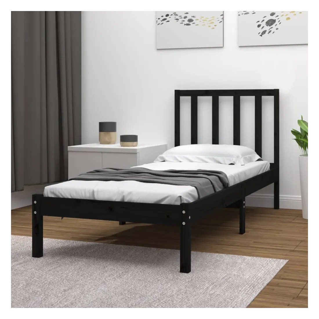 Avec un design simple mais intemporel, ce cadre de lit en bois sera un supplément vraiment pratique et décoratif à votre chambre à coucher. Matériau de première qualité : le bois de pin massif est un matériau naturel magnifique. Le bois de pin a un grain droit et les nœuds donnent au matériau son aspect caractéristique et rustique.Cadre de lit robuste : le cadre en bois assure robustesse et stabilité. Les lattes apportent un soutien supplémentaire à votre lit. Il prolonge la durée de vie de votre matelas en absorbant la majeure partie du stress et du poids sur le lit.Soutien confortable : la tête de lit du cadre de lit vous offre un excellent soutien dorsal lorsque vous êtes assis au lit pour lire ou regarder des films. Remarque :Le matelas n'est pas inclus. Vous pouvez consulter notre boutique pour trouver les matelas assortis.Ce cadre de lit en bois convient à un matelas mesurant 75 x 190 cm (petit simple).