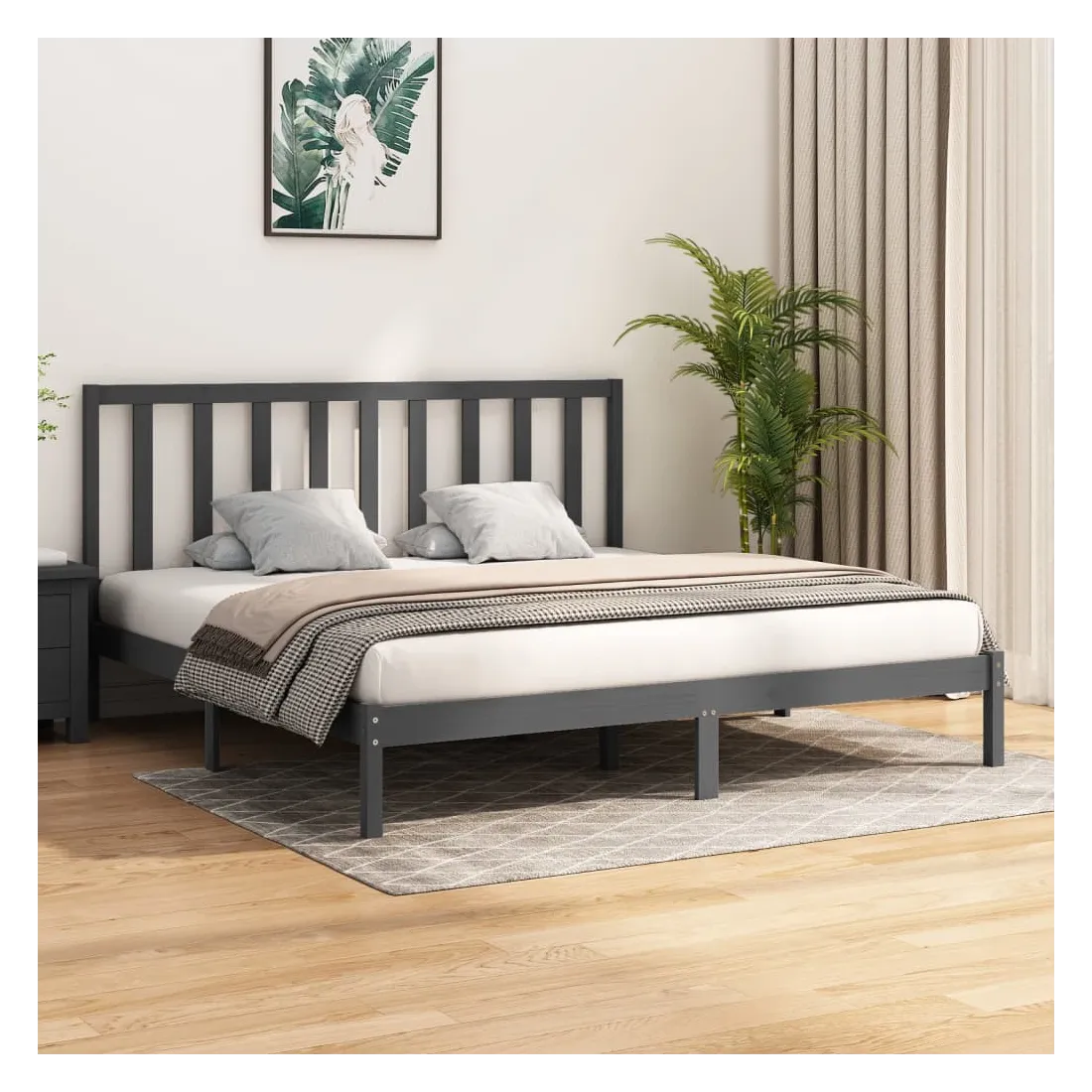 Cadre de lit sans matelas bois massif de pin gris 200x200 cm