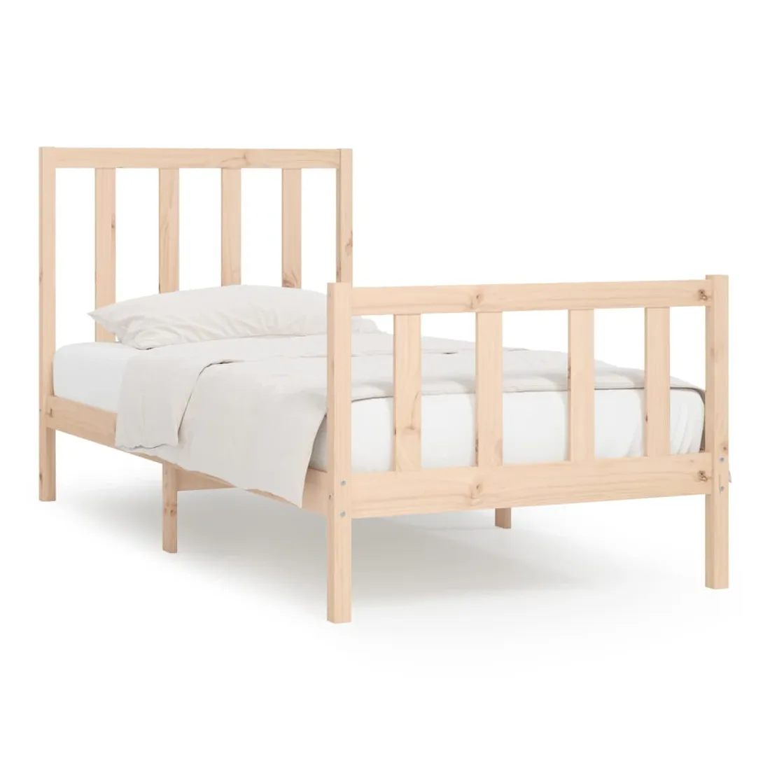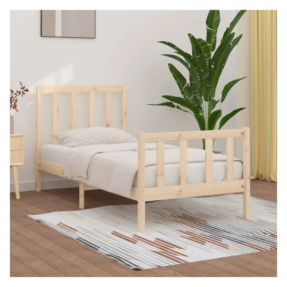 Ce cadre de lit classique, au design simple mais intemporel, est destiné à apporter une touche pratique et décorative à votre chambre à coucher. Bois de pin massif : le bois de pin massif est un matériau naturellement beau. Le bois de pin a un grain droit et les nœuds donnent au matériau son aspect caractéristique et rustique. Lattes de contreplaqué : les lattes de contreplaqué assurent une bonne répartition du poids, garantissant que le matelas reste en place à chaque torsion de votre corps pendant le sommeil.Expérience confortable : combinez ce cadre de lit et cette tête de lit en bois pour profiter pleinement de vos soirées. Qu'il s'agisse de vous reposer contre la tête de lit pour lire ou simplement faire un doux rêve, ce lit en bois saura répondre à vos besoins. Remarque :Le matelas n'est pas inclus. Vous pouvez consulter notre boutique pour trouver les matelas assortis.Ce cadre de lit convient à un matelas mesurant 90 x 190 cm (simple).