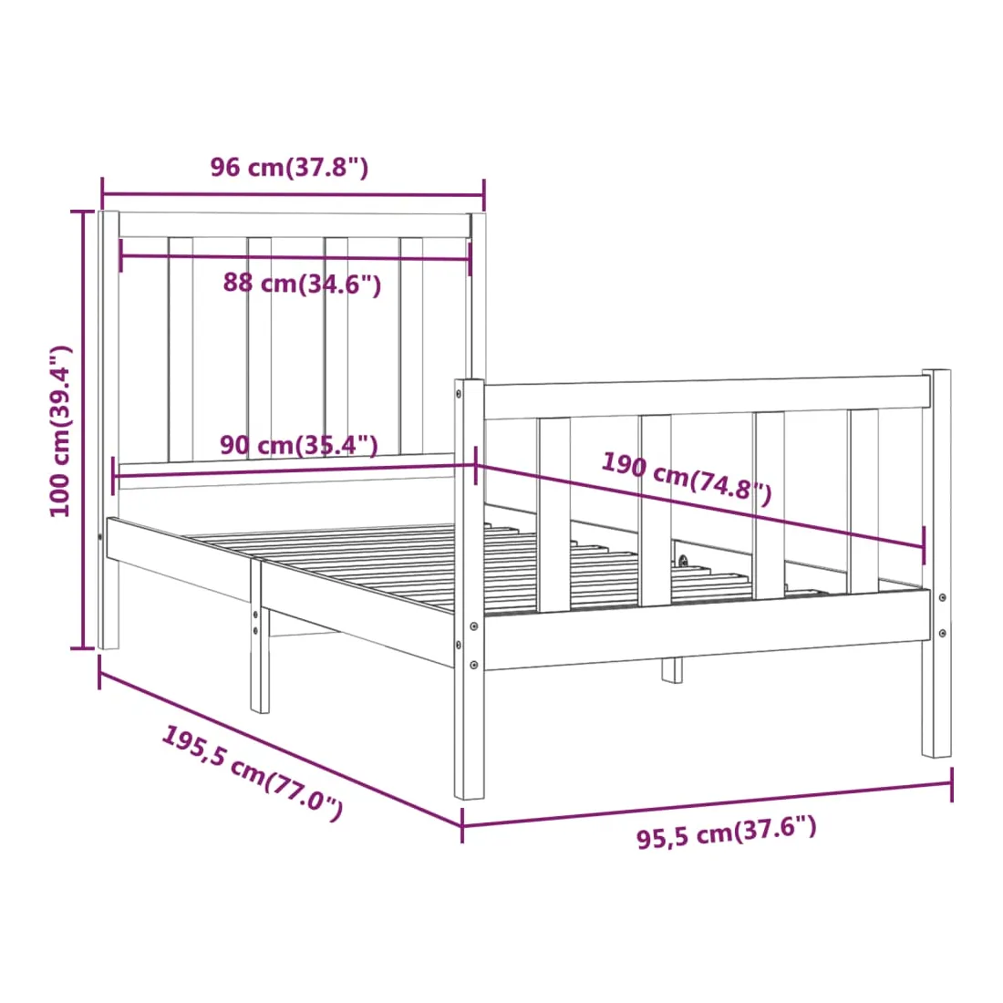 - Dimensions du cadre de lit : 195,5 x 95,5 x 69,5 cm (L x l x H)