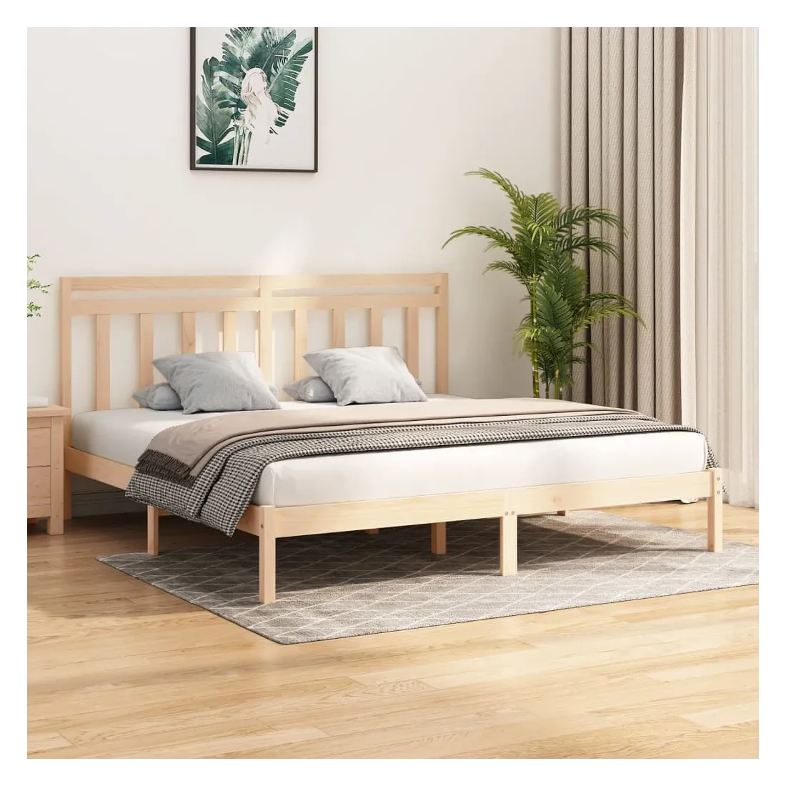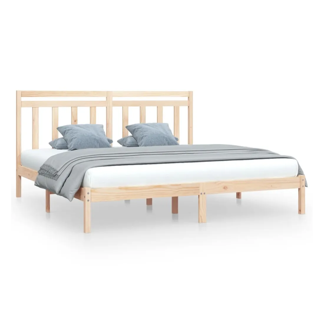 Ce cadre de lit classique, au design simple mais intemporel, est destiné à apporter une touche pratique et décorative à votre chambre à coucher. Bois de pin massif : le bois de pin massif est un matériau naturellement beau. Le bois de pin a un grain droit et les nœuds donnent au matériau son aspect caractéristique et rustique.Cadre robuste : les lattes de contreplaqué assurent une bonne répartition du poids, garantissant que le matelas reste en place à chaque torsion de votre corps pendant le sommeil.Expérience confortable : combinez ce cadre de lit et cette tête de lit en bois pour profiter pleinement de vos soirées. Qu'il s'agisse de vous reposer contre la tête de lit pour lire ou simplement faire un doux rêve, ce lit en bois saura répondre à vos besoins. Remarque :Le matelas n'est pas inclus. Vous pouvez consulter notre boutique pour trouver les matelas assortis.Ce cadre de lit convient à un matelas mesurant 200 x 200 cm.