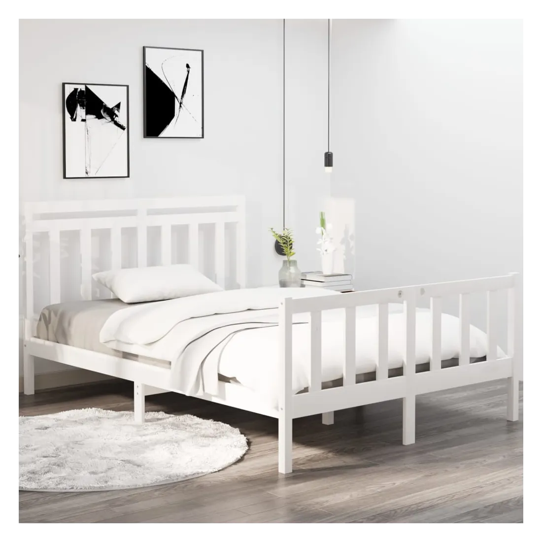Cadre de lit sans matelas blanc 135x190 cm bois massif