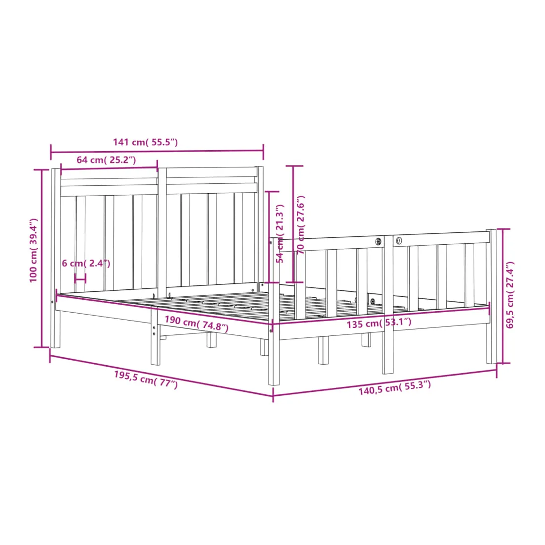 vidaXLCe cadre de lit classique, au design simple mais intemporel, est destiné à apporter une touche pratique et décorative à votre chambre à coucher. Bois de pin massif : le bois de pin massif est un matériau naturellement beau. Le bois de pin a un grain droit et les nœuds donnent au matériau son aspect caractéristique et rustique. Lattes de contreplaqué : les lattes de contreplaqué assurent une bonne répartition du poids, garantissant que le matelas reste en place à chaque torsion de votre corps pendant le sommeil.Expérience confortable : combinez ce cadre de lit et cette tête de lit en bois pour profiter pleinement de vos soirées. Qu'il s'agisse de vous reposer contre la tête de lit pour lire ou simplement faire un doux rêve, ce lit en bois saura répondre à vos besoins. Remarque :Le matelas n'est pas inclus. Vous pouvez consulter notre boutique pour trouver les matelas assortis.Ce cadre de lit convient à un matelas mesurant 135 x 190 cm (double).
