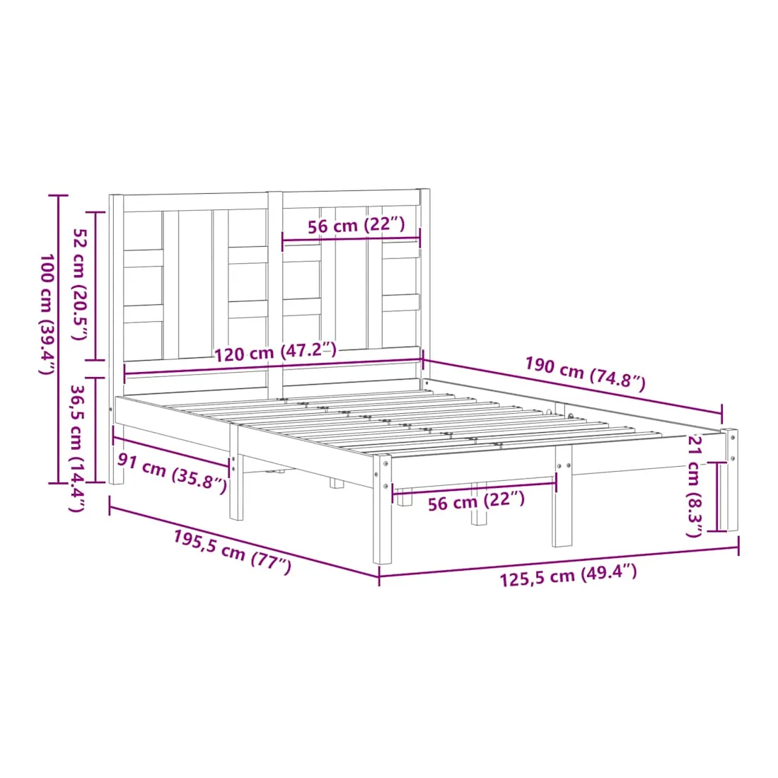 - Dimensions du cadre de lit : 195,5 x 125,5 x 31 cm (L x l x H)