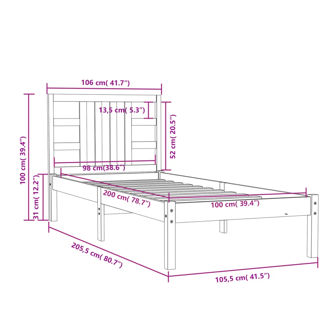 Cadre de lit sans matelas noir 100x200 cm bois massif