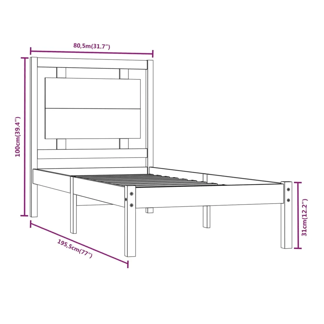 - Dimensions du cadre de lit : 195,5 x 80,5 x 31 cm (L x l x H)