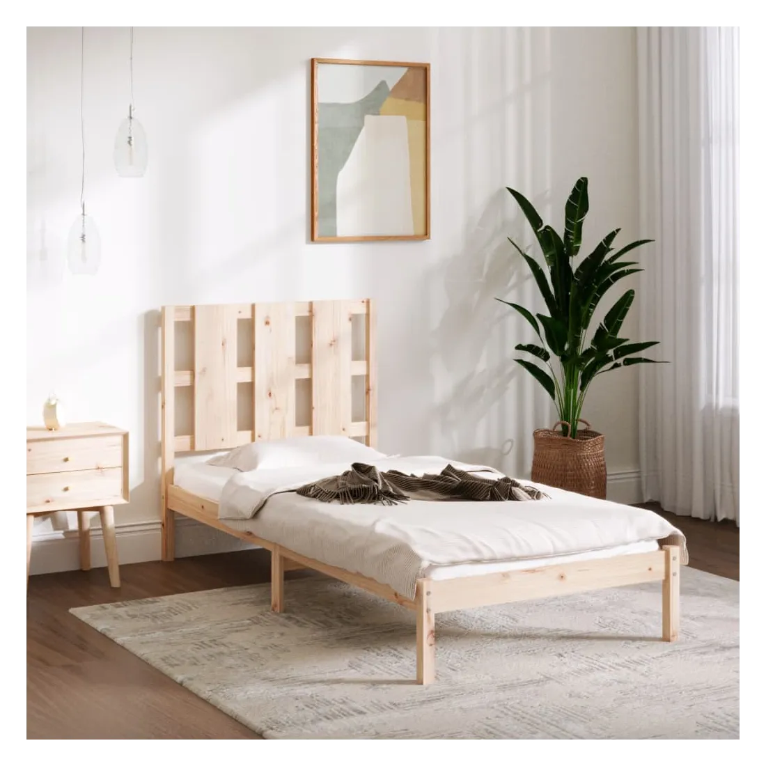 Prenez le chemin moderne vers votre chambre à coucher cool avec ce cadre de lit en bois ! Il constitue un supplément pratique et décoratif à votre intérieur. Bois de pin massif : le bois de pin massif est un matériau naturel magnifique. Le bois de pin a un grain droit et les nœuds donnent au matériau son aspect caractéristique et rustique. Lattes robustes : les lattes de contreplaqué assurent une bonne répartition du poids, garantissant que le matelas reste en place à chaque torsion de votre corps pendant le sommeil. Tête de lit confortable : la tête de lit classique vous permet de vous reposer confortablement lorsque vous lisez ou regardez un film. Remarque : La livraison comprend uniquement un cadre de lit. Le matelas n'est pas inclus. Vous pouvez consulter notre boutique pour trouve