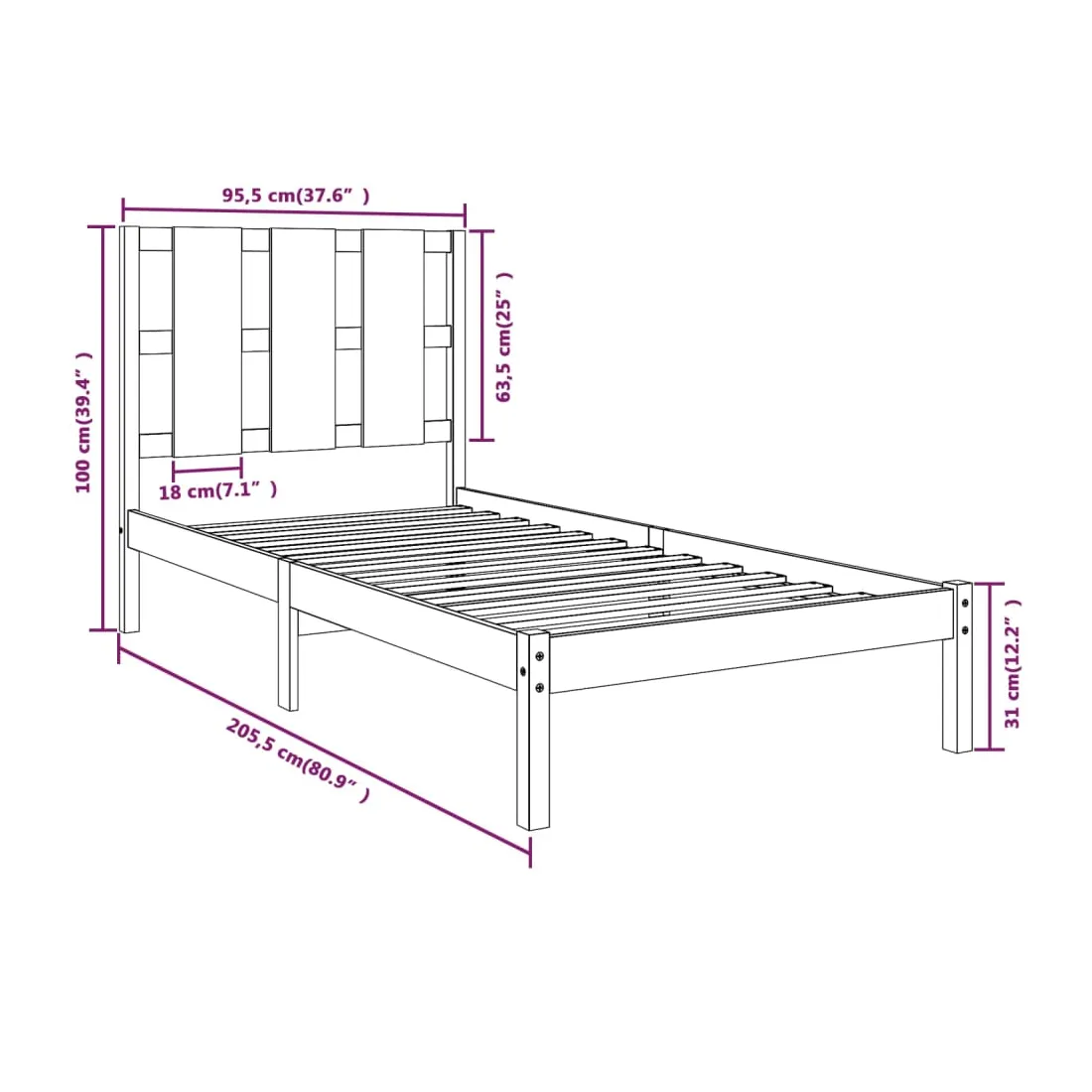 • Dimensions de la tête de lit : 95,5 x 4 x 100 cm (l x P x H)