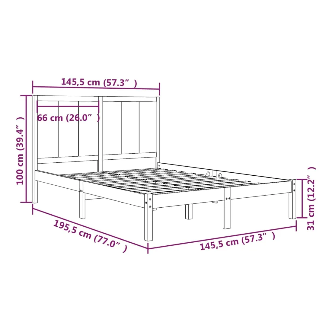 • Dimensions du cadre de lit : 195,5 x 145,5 x 31 cm (L x l x H)