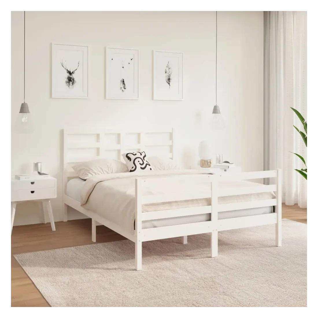 Cadre de lit sans matelas blanc bois massif 120x190 cm