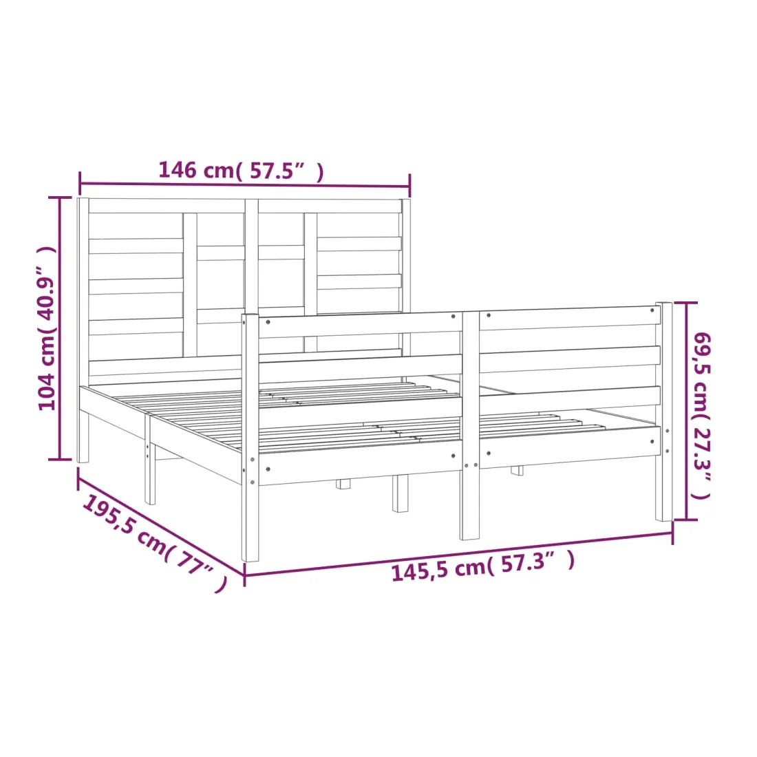 Cadre de lit sans matelas bois massif 140x190 cm