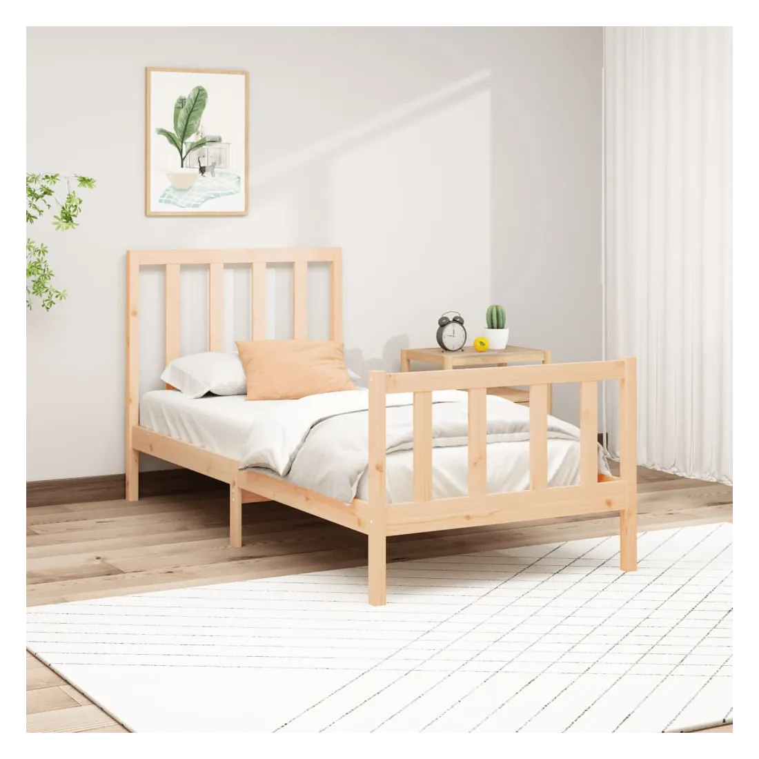Prenez le chemin moderne vers votre chambre à coucher cool avec ce cadre de lit en bois ! Il constitue un supplément pratique et décoratif à votre intérieur. Bois de pin massif : le bois de pin massif est un matériau naturel magnifique. Le bois de pin a un grain droit et les nœuds donnent au matériau son aspect caractéristique et rustique.Cadre robuste et stable : le cadre en bois assure robustesse et stabilité.Tête de lit confortable : la tête de lit classique vous permet de vous reposer confortablement lorsque vous lisez ou regardez un film.Design accrocheur : la conception de la tête et du pied de lit est à la fois décorative et pratique. Il ajoute un style et un confort uniques. Remarque :La livraison comprend uniquement un cadre de lit. Le matelas n'est pas inclus. Vous pouvez consulter notre boutique pour trouver les matelas assortis.Ce cadre de lit convient à un matelas mesurant 90 x 200 cm.