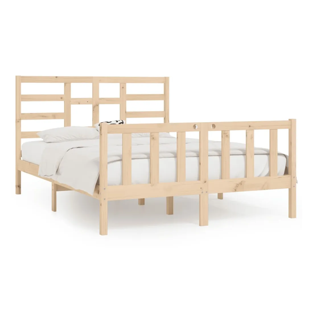 Prenez le chemin moderne vers votre chambre à coucher cool avec ce cadre de lit en bois ! Il constitue un supplément pratique et décoratif à votre intérieur. Bois de pin massif : le bois de pin massif est un matériau naturel magnifique. Le bois de pin a un grain droit et les nœuds donnent au matériau son aspect caractéristique et rustique.Lattes robustes : les lattes de contreplaqué assurent une bonne répartition du poids, garantissant que le matelas reste en place à chaque torsion de votre corps pendant le sommeil.Design accrocheur : la conception de la tête et du pied de lit est à la fois décorative et pratique. Il ajoute un style et un confort uniques. Bon à savoir :La livraison comprend uniquement un cadre de lit. Le matelas n'est pas inclus. Vous pouvez consulter notre boutique pour trouver les matelas assortis.Certaines pièces de tête de lit sont emballées dans les cartons du cadre de lit en raison du manque d’espace.Ce cadre de lit convient à un matelas mesurant 150 x 200 cm (très grand).