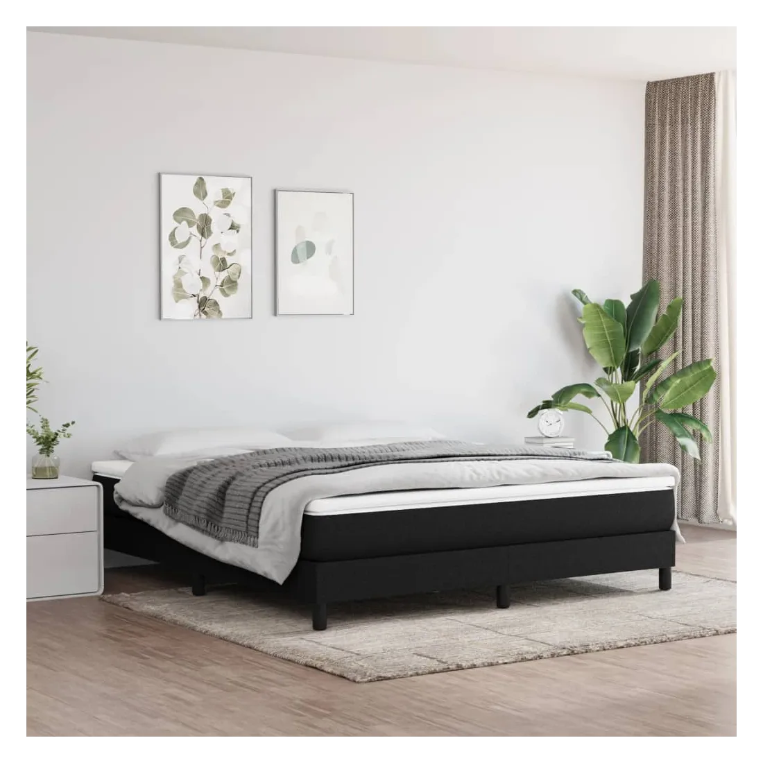 Cadre de lit à ressorts noir 160x200 cm tissu