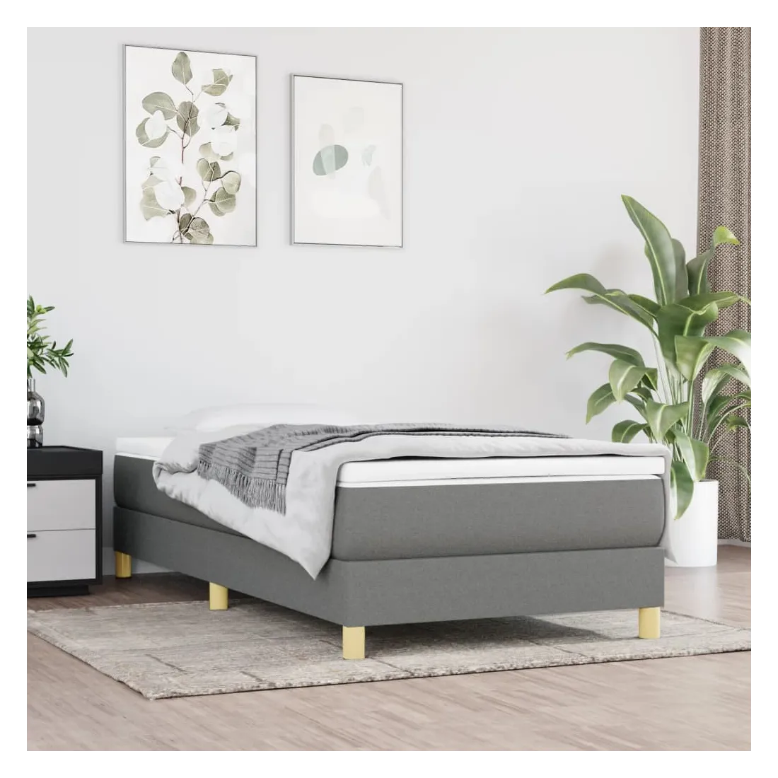 Obtenez une meilleure nuit de sommeil reposante grâce à ce cadre de lit à ressorts ! Il est un supplément accueillant à toute chambre à coucher. Tissu durable : le tissu présente un aspect simple et épuré, et il est respirant et durable.Pieds de soutien : le lit est soutenu par des pieds robustes, qui assurent sa stabilité, sa sécurité et sa fermeté.Lattes de contreplaqué : les lattes de contreplaqué assurent une bonne répartition du poids, garantissant que le matelas reste en place à chaque torsion de votre corps pendant le sommeil. Bon à savoir :Un matelas n'est pas inclus avec ce lit. Nous offrons une sélection variée de matelas. Vous pouvez consulter notre boutique pour trouver un matelas assorti.