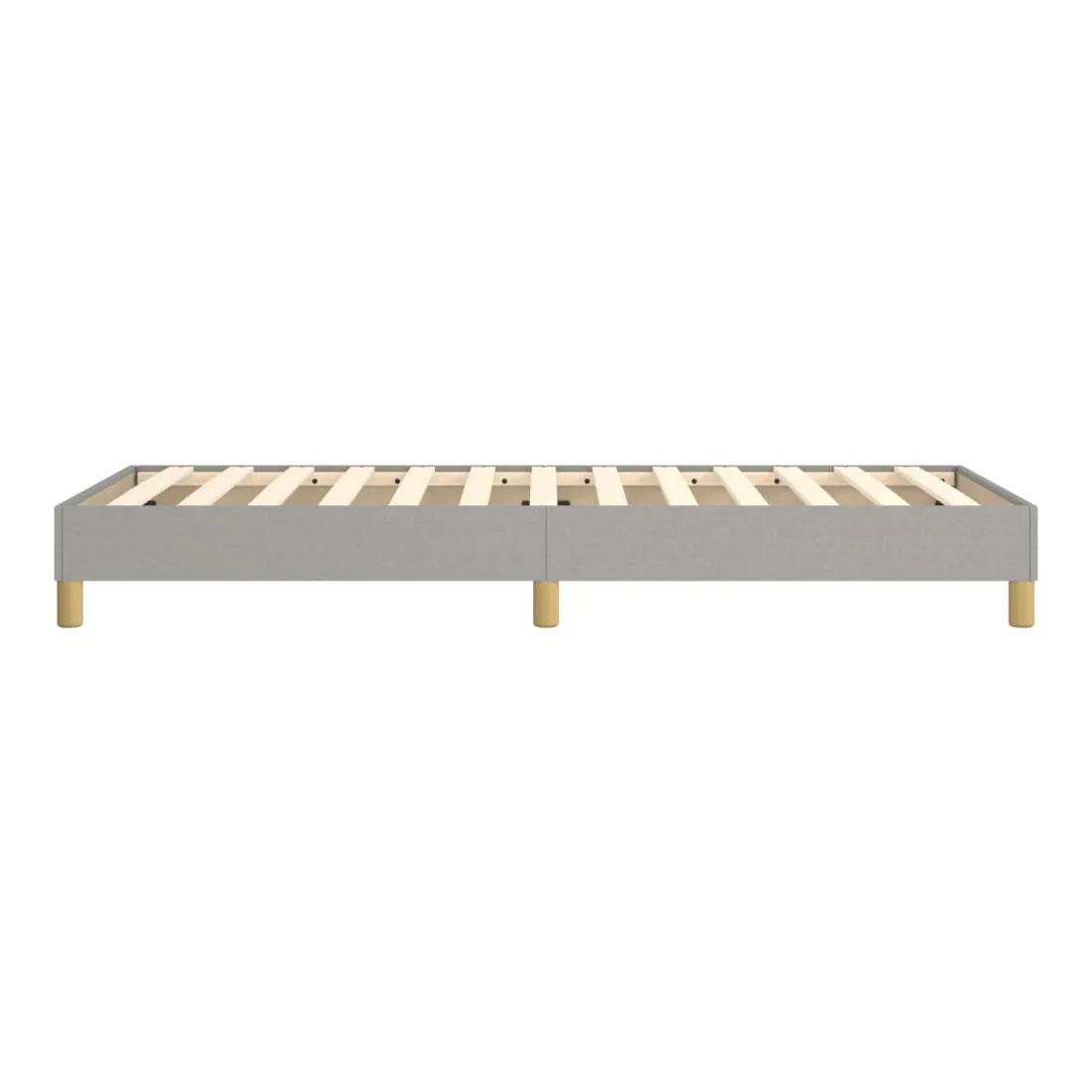 Obtenez une meilleure nuit de sommeil reposante grâce à ce cadre de lit à ressorts ! Il est un supplément accueillant à toute chambre à coucher. Tissu durable : le tissu présente un aspect simple et épuré, et il est respirant et durable.Pieds de soutien : le lit est soutenu par des pieds robustes, qui assurent sa stabilité, sa sécurité et sa fermeté.Lattes de contreplaqué : les lattes de contreplaqué assurent une bonne répartition du poids, garantissant que le matelas reste en place à chaque torsion de votre corps pendant le sommeil. Bon à savoir :Un matelas n'est pas inclus avec ce lit. Nous offrons une sélection variée de matelas. Vous pouvez consulter notre boutique pour trouver un matelas assorti.